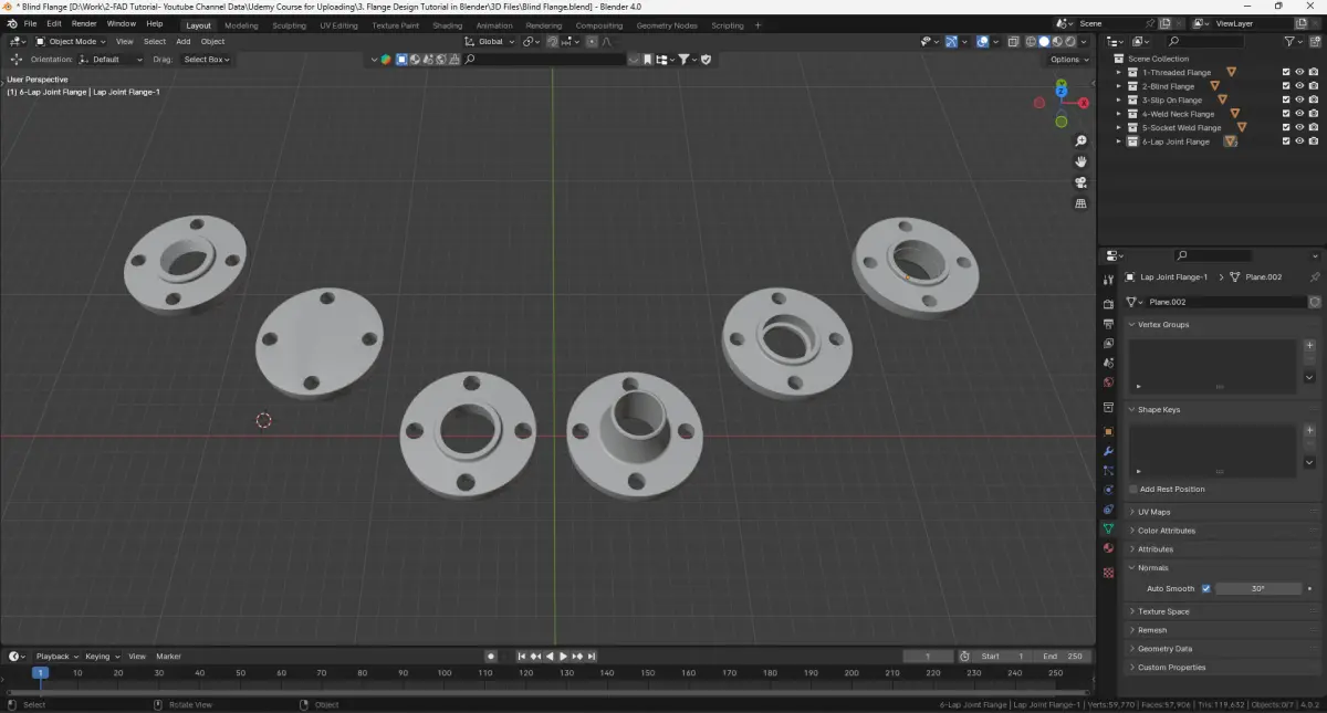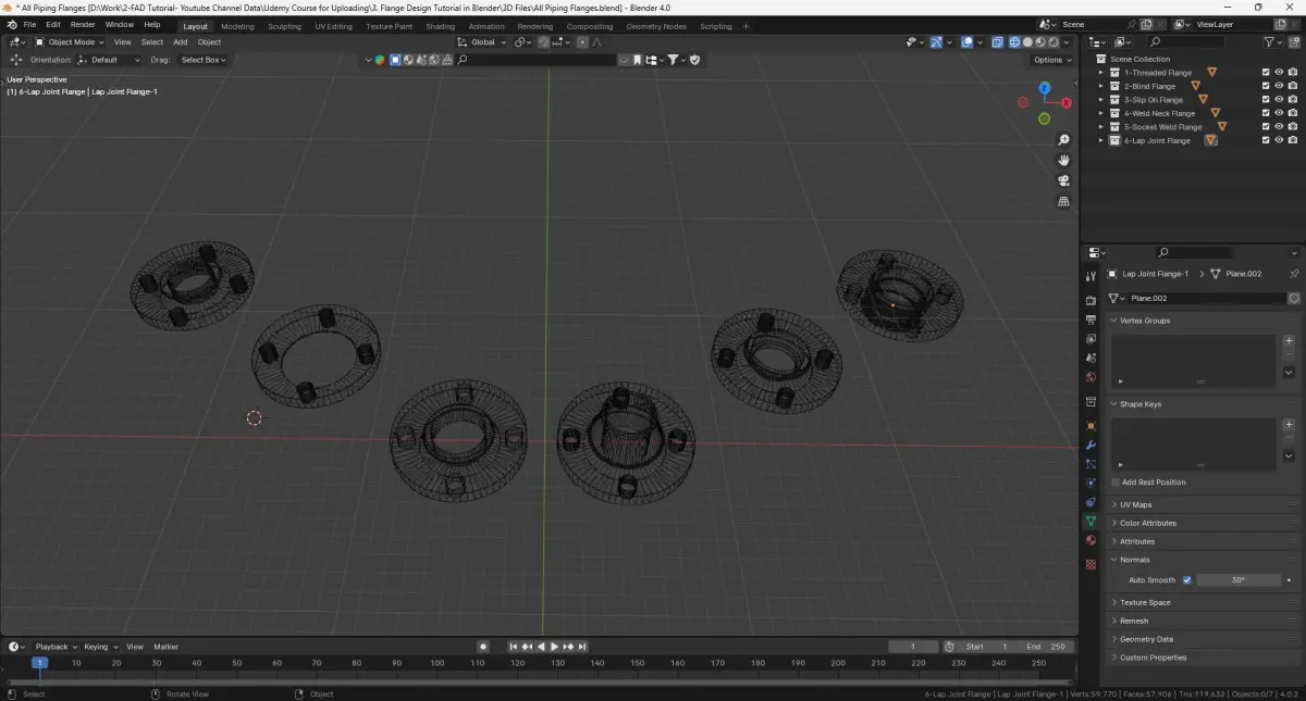 06 Piping Flange types (Threaded,Blind Slip On, Weld Neck, Socket & Lap) of 3D models in both FBX and BLEND formatsIncludes both base and beveled files (simply apply subdivision for high-poly details)