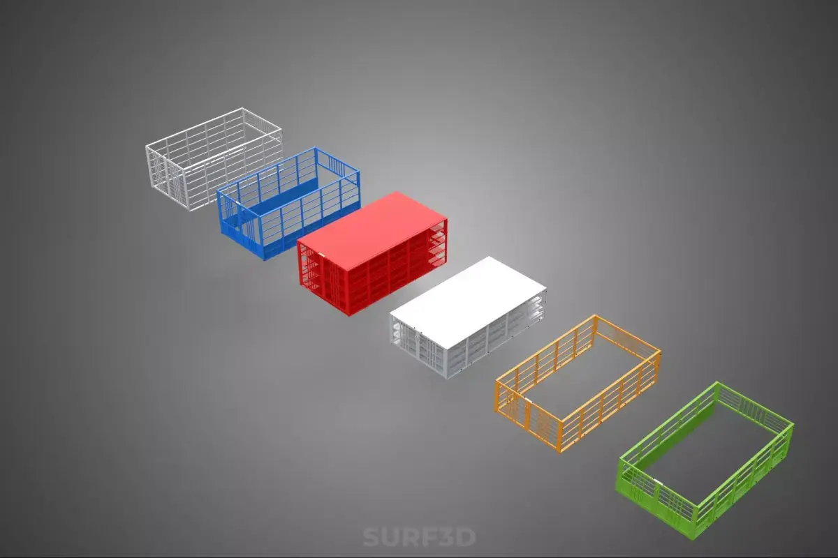 The cage component commonly features welded wire mesh, reinforced bars, or perforated metal sheeting, ensuring robust containment while allowing for visibility of contents. Design variations include: