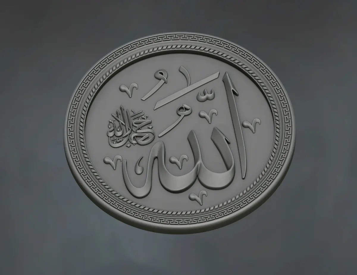 Experience the divine essence of Allah's name brought to life through the intricate artistry of 3D calligraphy, tailored for CNC machining and 3D printing. Each stroke, meticulously crafted, embodies a sense of reverence and devotion, transcending the physical realm to evoke spiritual contemplation. Utilizing advanced digital fabrication techniques, this artwork merges traditional calligraphic forms with cutting-edge technology, resulting in a masterpiece of precision and beauty. From the graceful curves to the intricate details, every aspect of Allah's name is meticulously rendered, inviting viewers to immerse themselves in the sacred geometry and profound symbolism encapsulated within this mesmerizing creation.Size of file is 21.65 inch in diameter and thickness 1.2 inches.