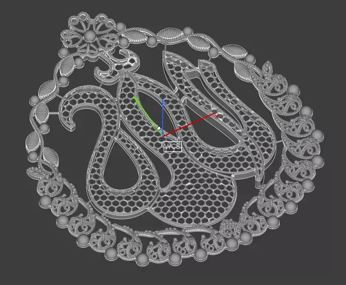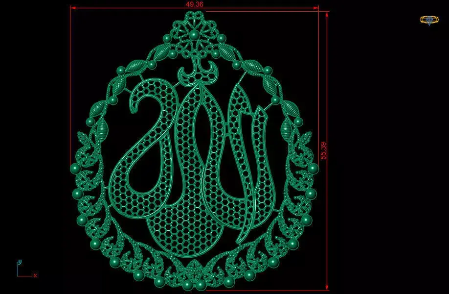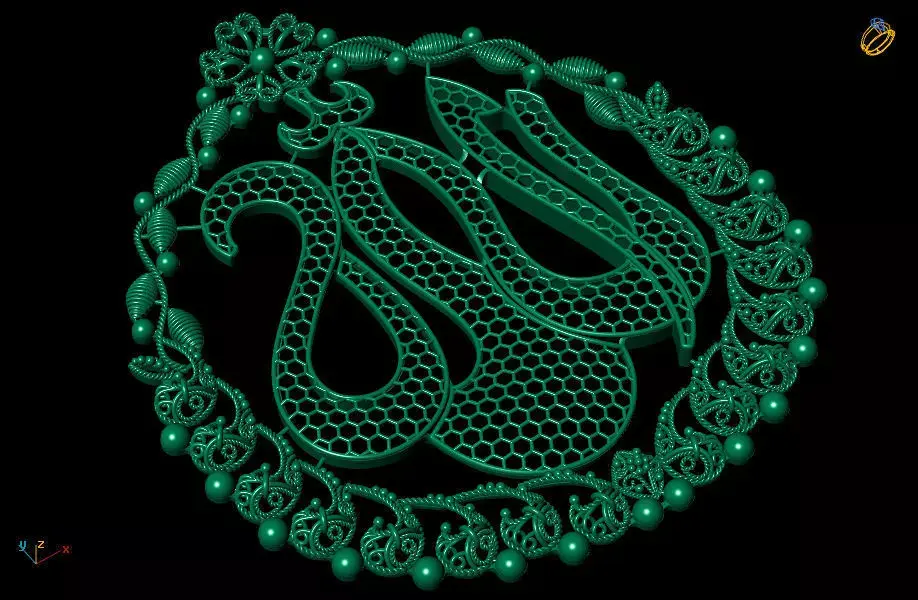 Light weight Allah Name Locket with madrasi work all around it. No Gems. Uploaded fixed .mgx as print ready file. Dimensions included in the picture (Length=55.4mm, Width= 49.3mm) Gold 18K weight = 8.600g, Sterling Silver weight = 5.800g. The Thickness of this Locket is more suitable for Gold casting, If you want this for silver casting, increase thickness a bit beforehand. Or contact me and I'll do it for you.