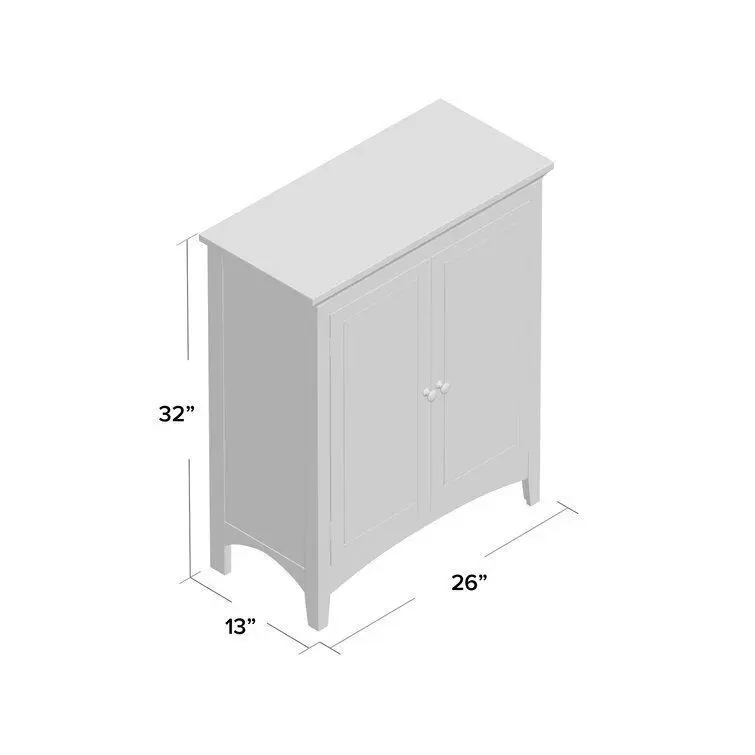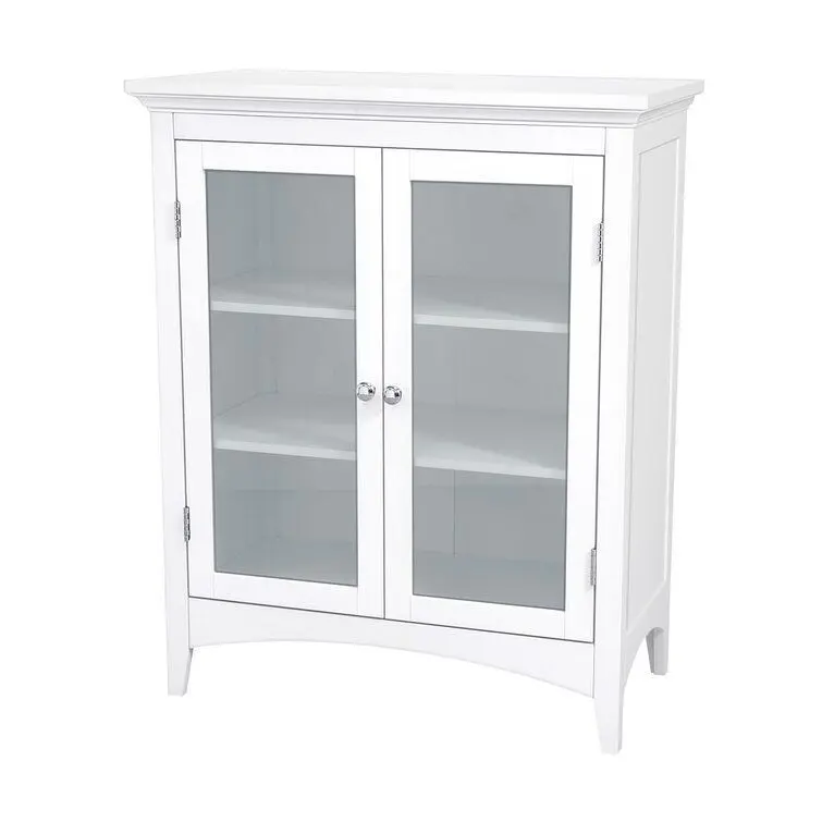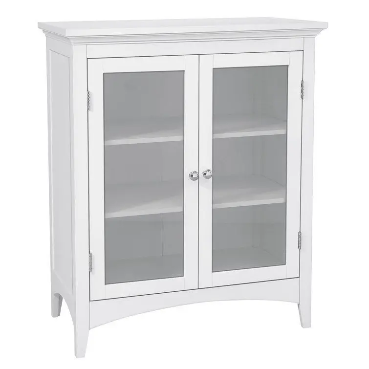 - The Teamson Home Madison Freestanding Wooden Floor Cabinet is a versatile storage solution featuring a white finish with a crown moulded top and arched bottom skirting and legs. The pair of glass doors open with chrome knobs and stayed securely closed with a magnetic latch.