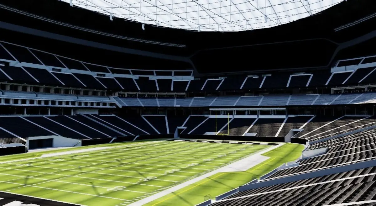 Allegiant Stadium is a domed stadium under construction, located in Paradise, Nevada, United States. It will serve as the home stadium for the National Football League (NFL)'s Las Vegas Raiders and the University of Nevada, Las Vegas (UNLV) Rebels college football team. It is located on about 62 acres (25 ha) of land west of Mandalay Bay at Russell Road and Hacienda Avenue and between Polaris Avenue and Dean Martin Drive, just west of Interstate 15. Construction of the $1.8 billion stadium began on November 13, 2017, and is expected to be completed in July 2020 in time for the 2020 NFL season. Raiders officials have noted this will be a substantial completion date meaning not every element of the stadium will be finished, but enough will be done to host football games, concerts and other events. The stadium will host the annual Las Vegas Bowl which moves from Sam Boyd Stadium and features the Pac-12 against a team from the Big Ten Conference or Southeastern Conference.