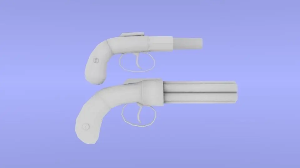 It is Allen pistols (lowpoly):-Allen Double Action Bar Hammer Pistol (1837)/Polygons:514/Vertices:519-Allen percussion pepperbox (1838)/Polygons:611/Vertices:712Pistols manufactured by Allen & Thurber