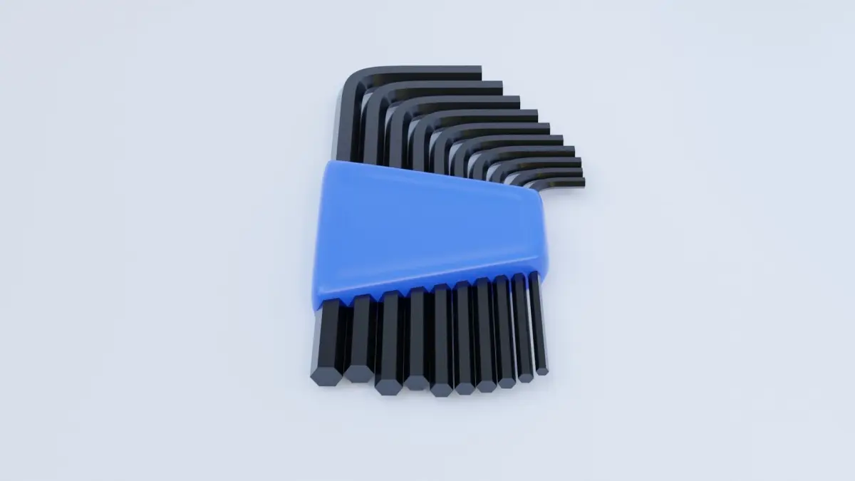 Allen Keys 3D model that I made using Blender. This is a low poly model that includes 2 diffuse textures. The plastic part of the model uses the same colour for both diffuse textures however the allen keys come in black and silver colours. Both colours can be modified.