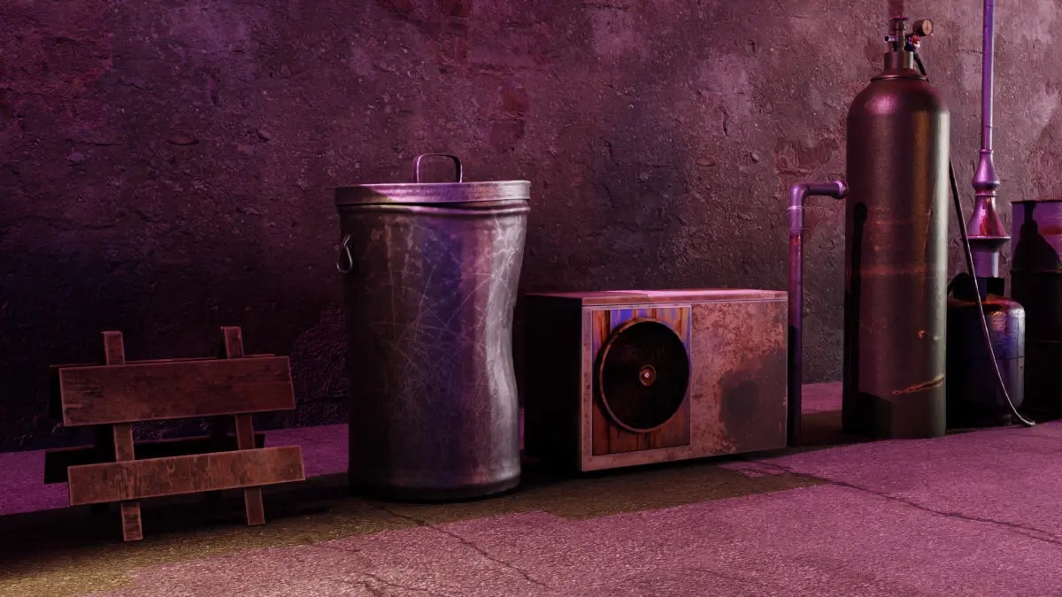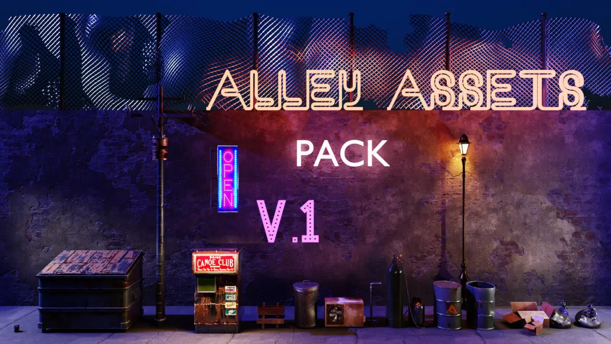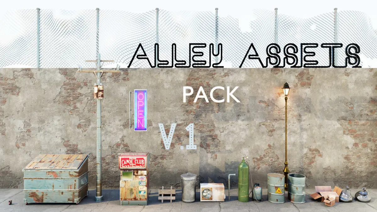 This is a 3d assets pack that contains 15+ different poly models. Included in the .rar:15+ models (Including little assets like wheels and a hose)Garbage container, Soda machine, Air conditioner, Pipe, Electricity pole, Light pole, Gas tanks, Boxes, Trash bags, Trashcan, Metal grid and some othersTextures used forthe renders shownPreview renders