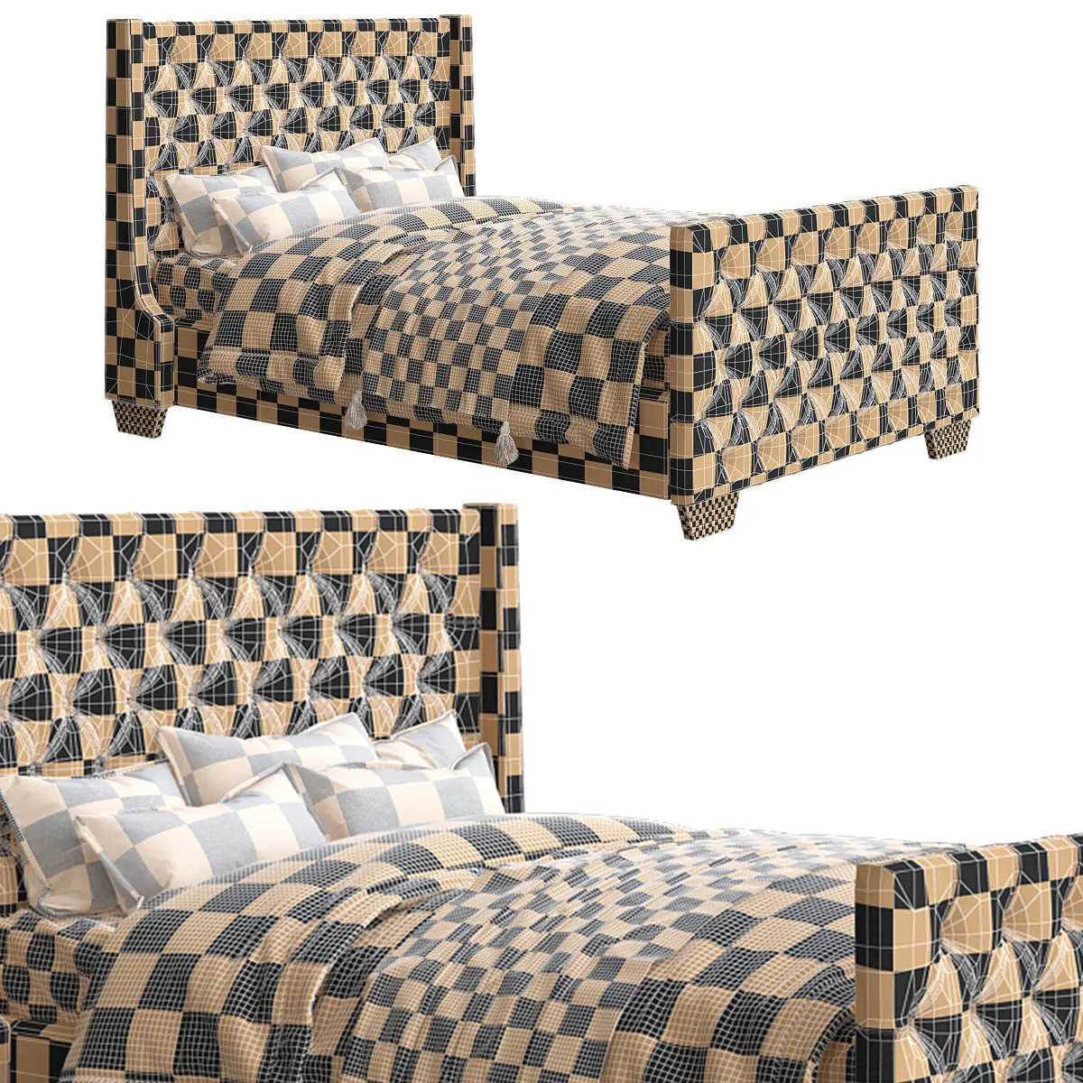 Allie Velvet Wingback Bed 3d model Low-poly 3D model