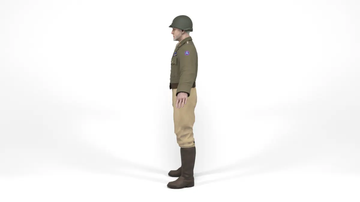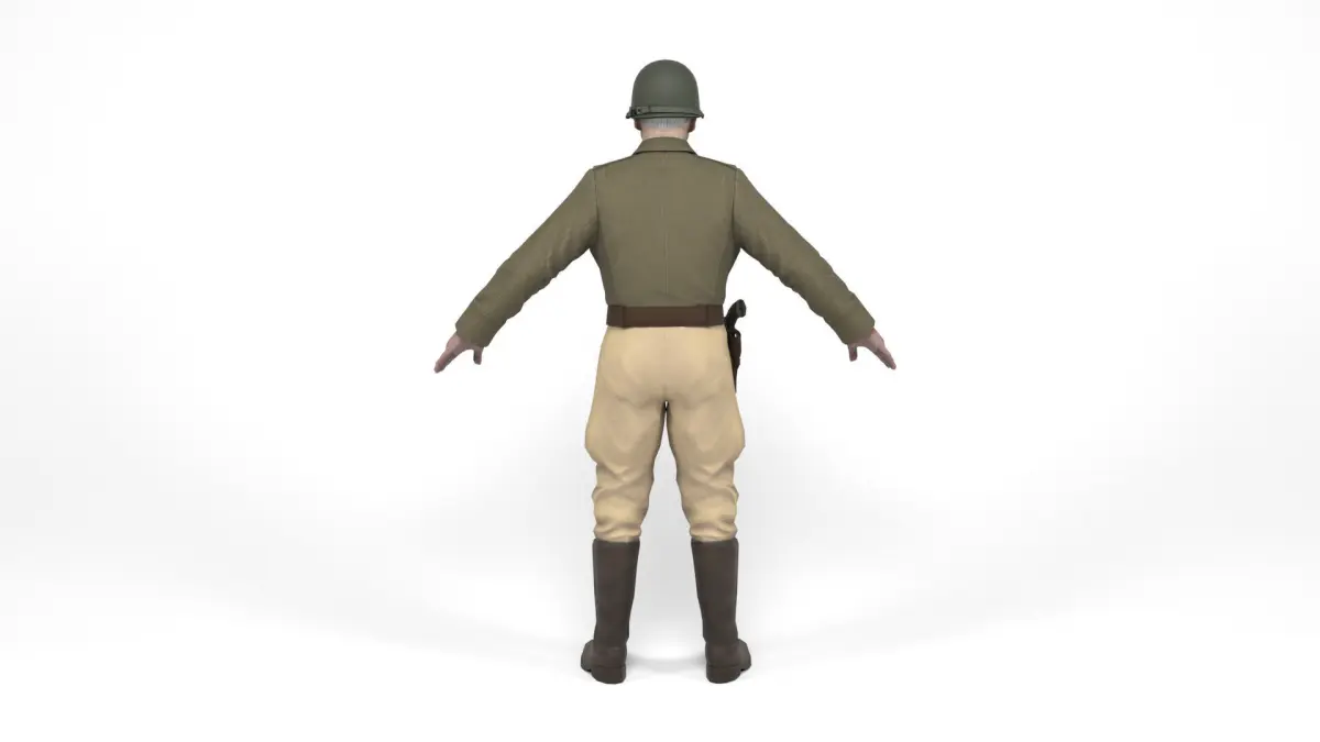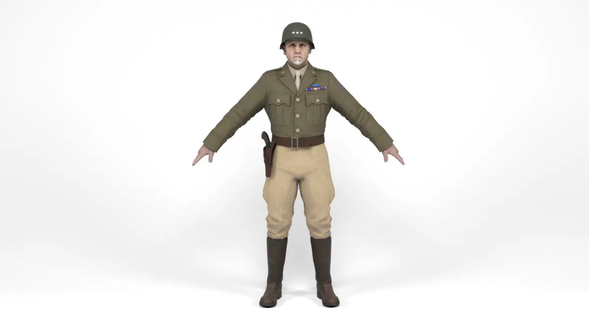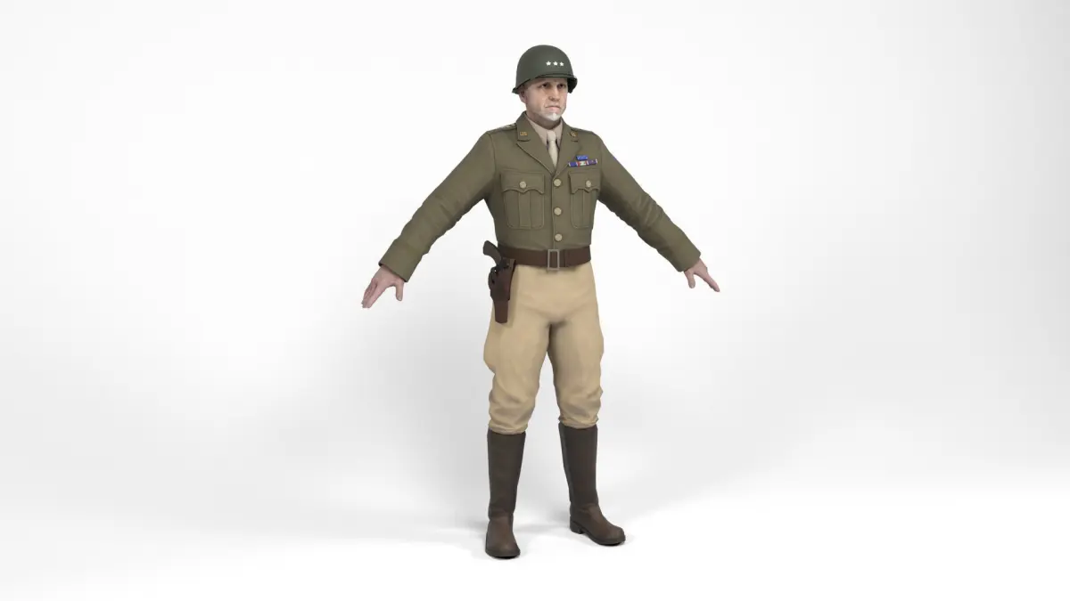 3D model of a american allied general of the second world war. Weapon included. The model includes bones and several animations. Model ideal to be used in games, advertising and video production. Low-poly models to be used easily in any project.