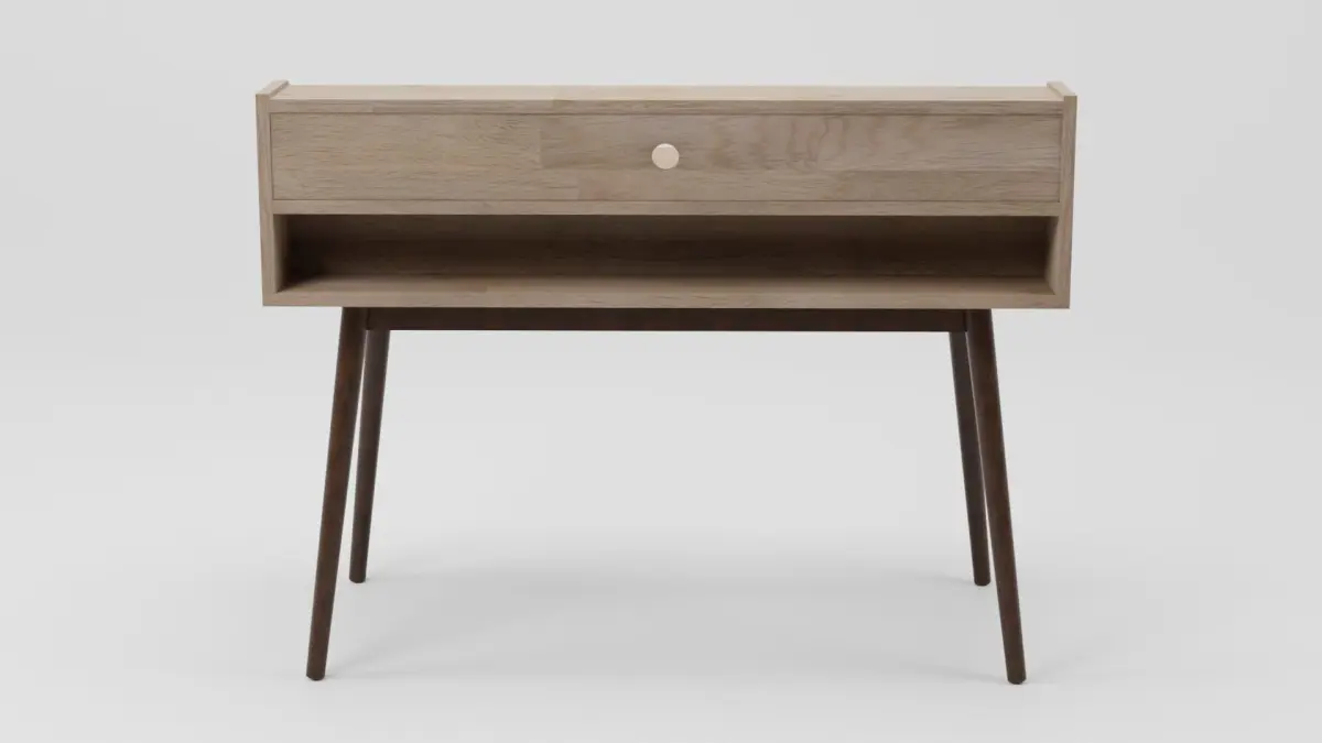 The Desk is separated into 3 objects, the desk itself and the two drawers. This is to allow for easy movement to open and close the drawers. This means there are separate materials, one for the Desk itself and one for the Drawers - both drawers use the same material.
