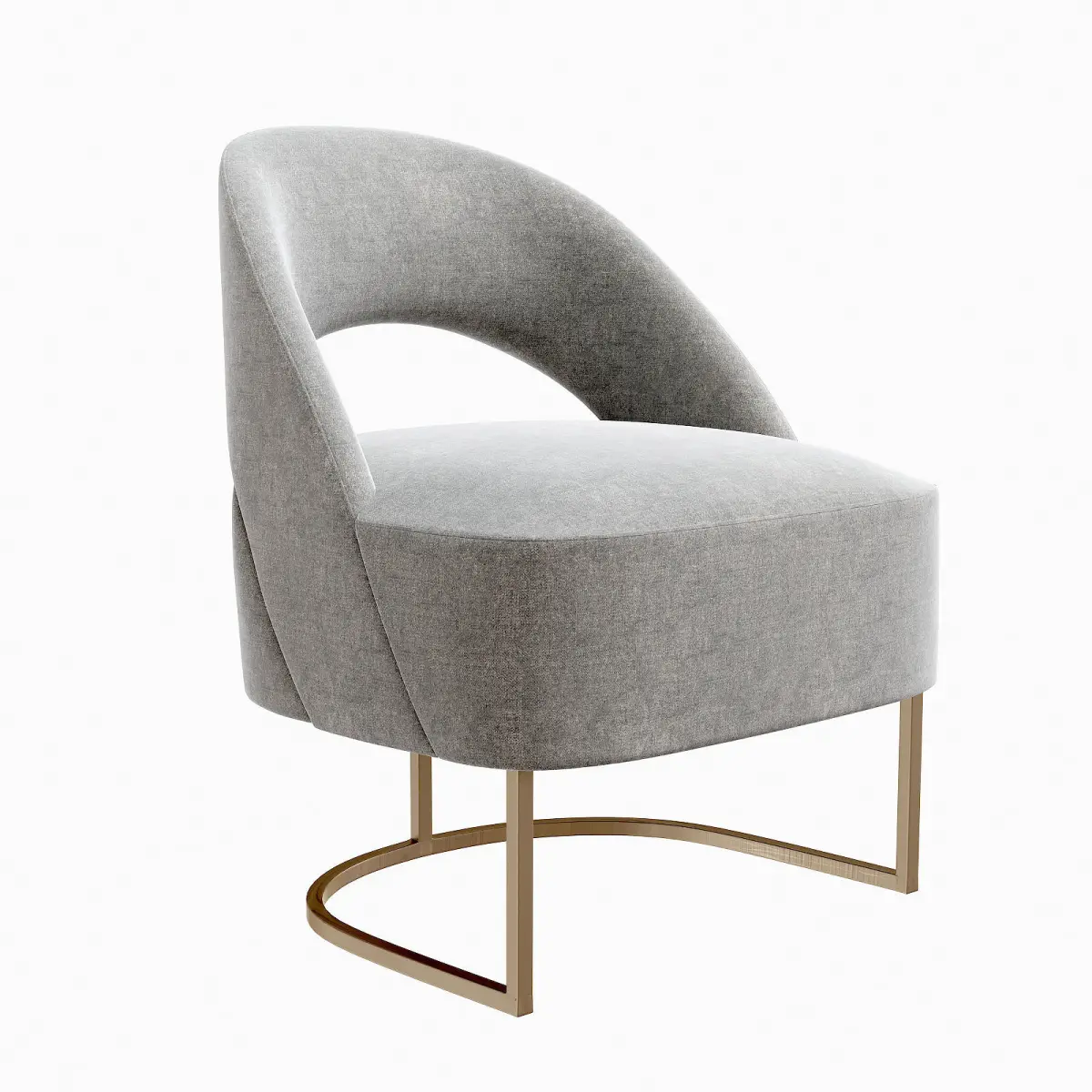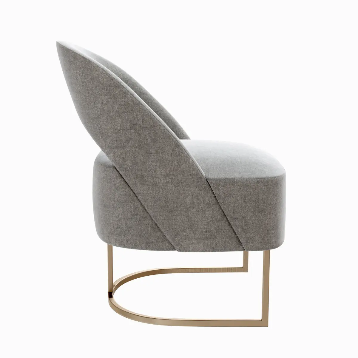 Alma armchair, upholstery in fabric, metal base in bronze finish.