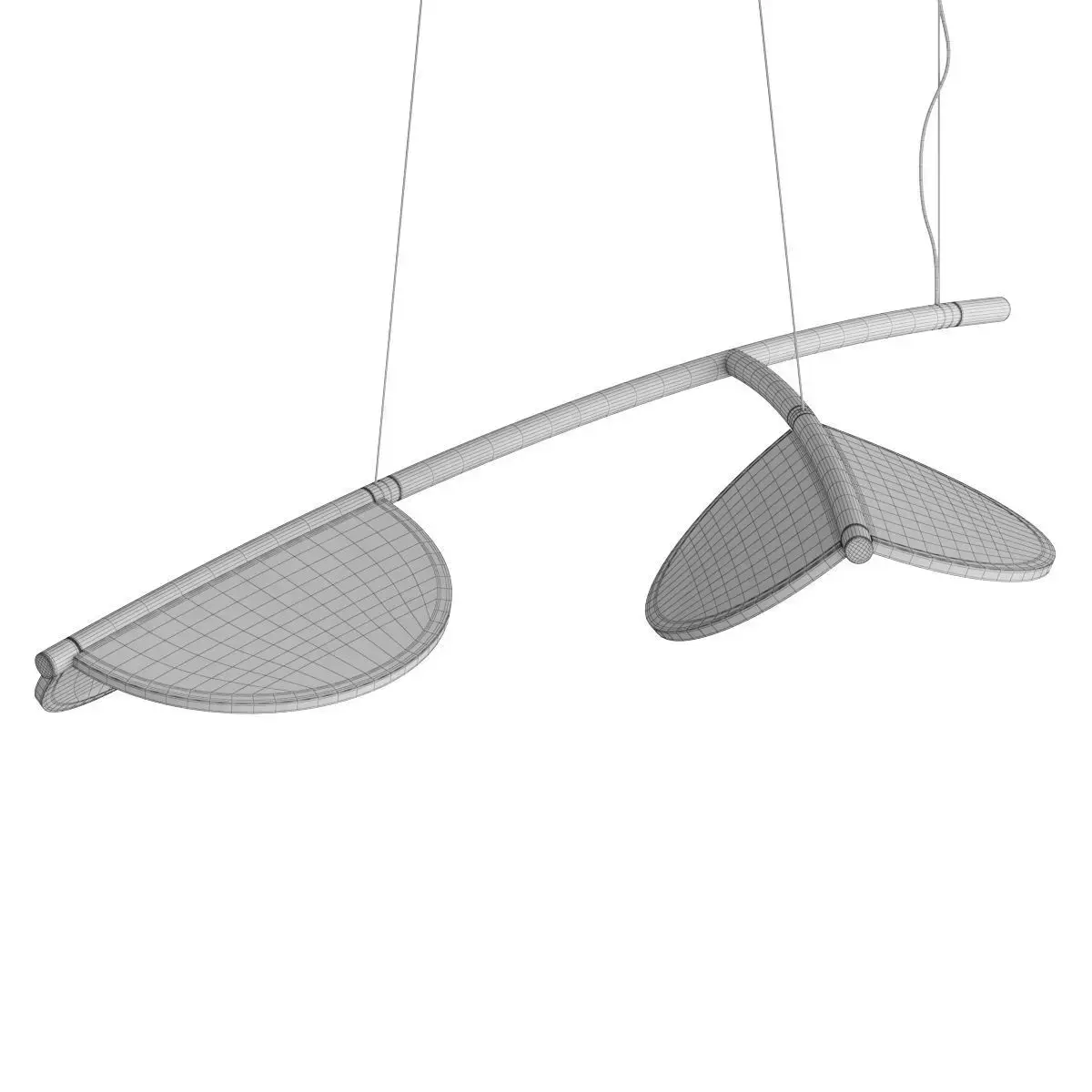 This is a premium 3D model of the Almendra Organic lighting fixture, a highly artistic and modern piece. The model accurately captures the lamp's unique, sculptural form, which features a series of gracefully curved, petal-like light elements arranged along a horizontal bar. The design is both organic and avant-garde, creating a sense of natural elegance and dynamic movement.