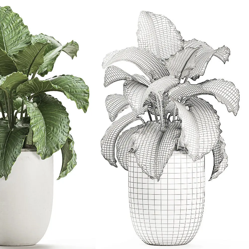 Alocasia in a white flowerpot for decor and interior design 510 3D model