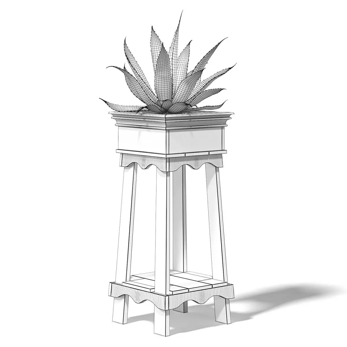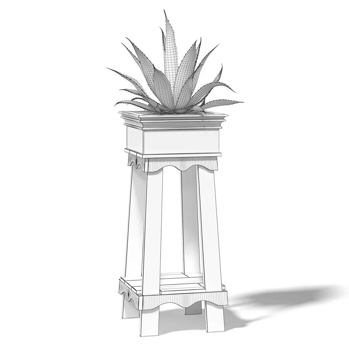 Aloe in tall rough looking wooden planter 3d model. Compatible with 3ds max 2010 (V-Ray, Mental Ray, Corona) or higher, Cinema 4D R15 (V-Ray, Advanced Renderer), FBX, OBJ and Unreal Engine.