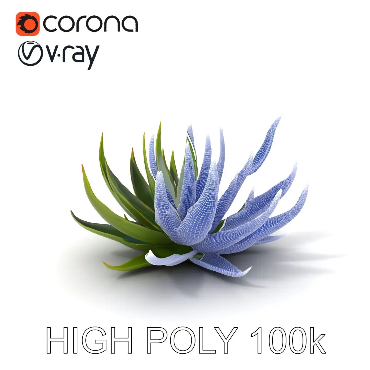This Aloe Succulent Model Pack features detailed models available in three levels of detail: low-poly (1000 triangles for mobile), middle-poly (10,000 triangles for environment), and high-poly (100,000 triangles). This versatility allows for their use in production rendering, game engines, and interactive presentations based on the LOD System principle.