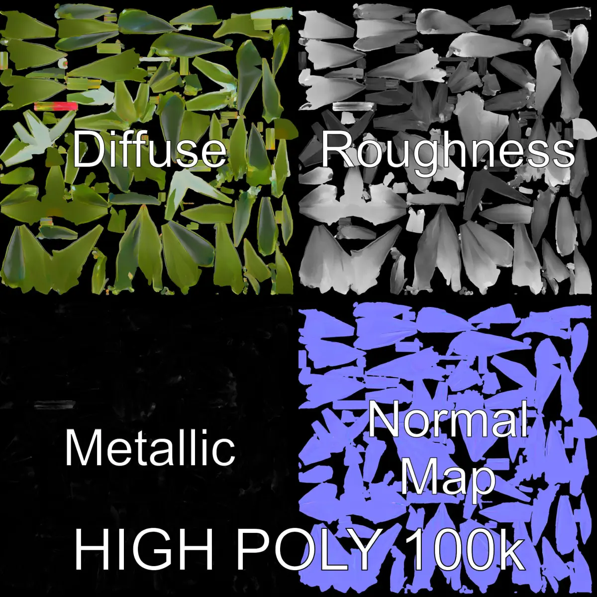 The high-quality models are ideal for architectural visualization, interior design, and garden scenes where realistic plant details enhance the ambiance. The textures are PBR with Diffuse, NormalMap, and reflection/roughness/metallic options, all at a resolution of 4096*4096, ensuring compatibility with modern rendering engines. The models are accurately unwrapped with no overlapping UVs.