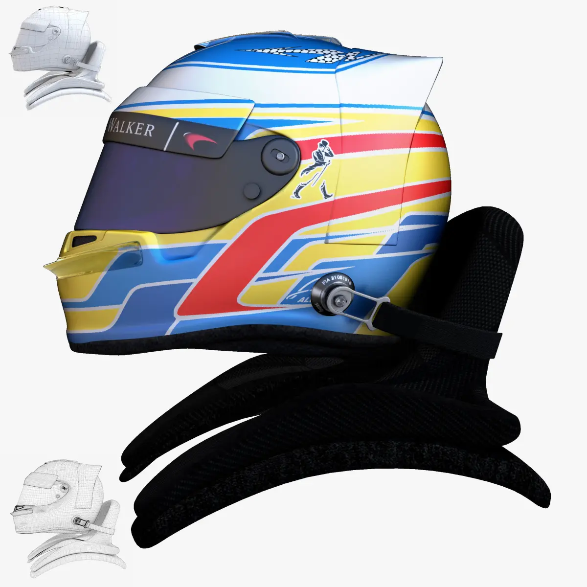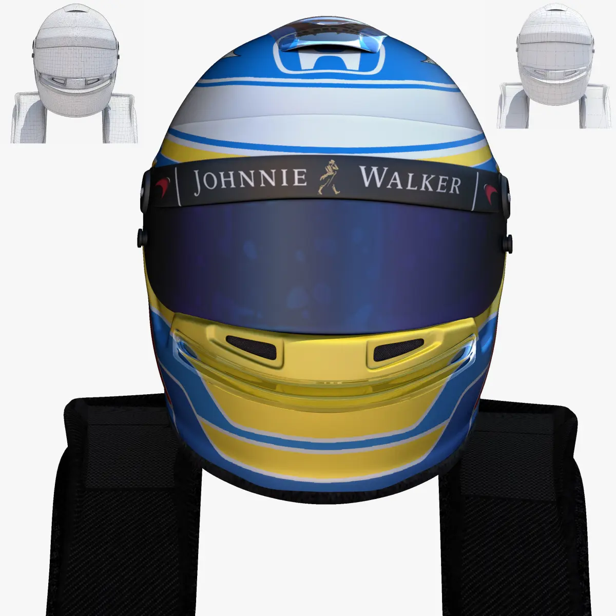 This is a 3D low poly model ,it was designed to provide a high definition in a low poly. Standard low-poly mesh with specific poly count. It`s the most accurate and realistic of the market. This is a recreation of a F1 Helmet model,it can suffer modification over the season. The model is completely ready for use visualization in maya. For low poly model simply press 1 and for the high resolution press 3. In Cinema4d go to function menu and subdivide. In 3dmax meshsmooth In the low poly: Poly count : 5878Vertex count : 6110In the smooth version: Poly count : 23510Vertex count : 24018Textures included. Each texture is in jpg format and have a 4K texture resolution for high quality It has color texture Because of different Disk topology at different computers it might be required to change the textures path at the destination computer. The 3D model was created on real base. It's created accurately, in real units of measurement, qualitatively and maximally close to the original. Please feel free to contact us for any query or if you need further assistance, we will be happy to assist you.