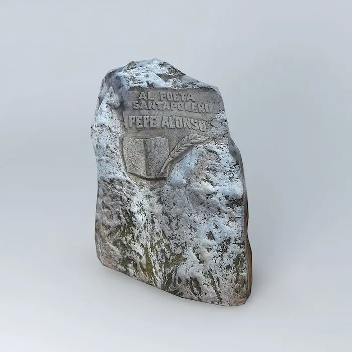 This 3D model was originally created with Sketchup 8 and then converted to all other 3D formats. Native format is .skp 3dsmax scene is 3ds Max 2016 version, rendered with Vray 3.00 SITO stone monument. IN PLZA. VALENCIA, dedicated to the poet LOCAL JOSE ALONSO (1915-1980), widely known outside THIS VILLA AS "PEPE THE SANTAPOLERO". POET self-taught expert in the art of "TROVO". AS TROVERO, he had an incredible fame, especially in the region of Murcia and espcial VERY WIDE FIELD OF CARTAGENA.