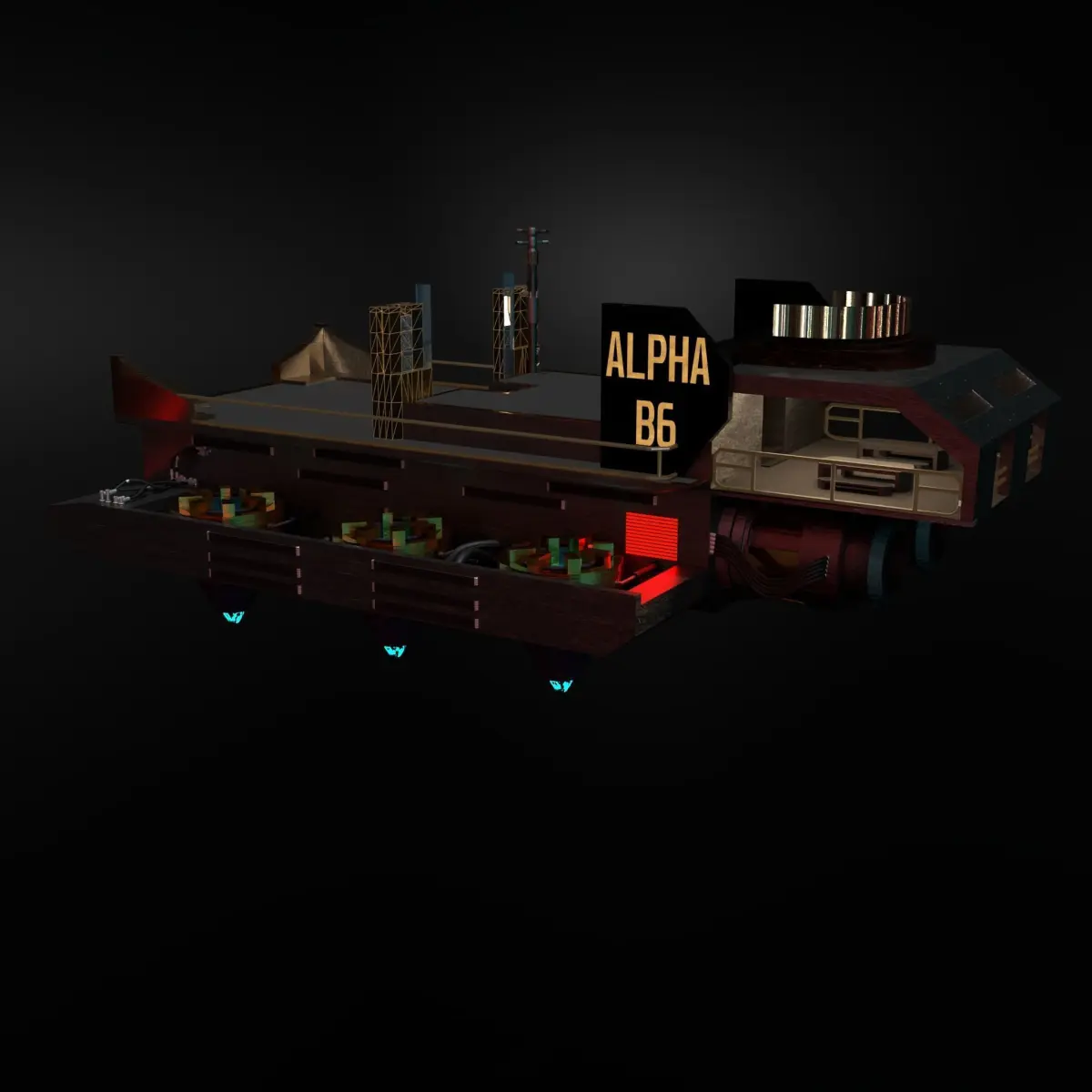 A Sci-Fi spaceship named Alpha-B6. The model is fully editable (eg. the name on the side panels etc.) with animated thursters. The model is also pre-rig setup for easy rigging. The ship consists of: