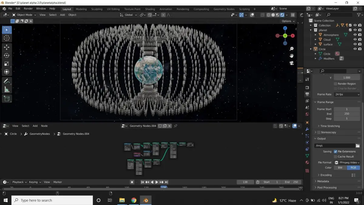 The model was designed in blender and rendered in Cycles.The model was made by using 3 layer its-Atmosphere,Cloud and surface.This combination give realistic feel of earth.EEVEE rendered result was not good cause of using cloud and atmosphere.Only use cycle for blender.