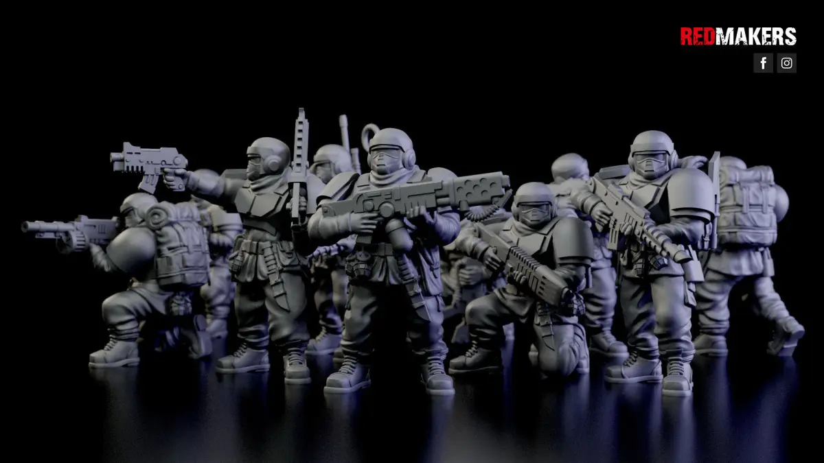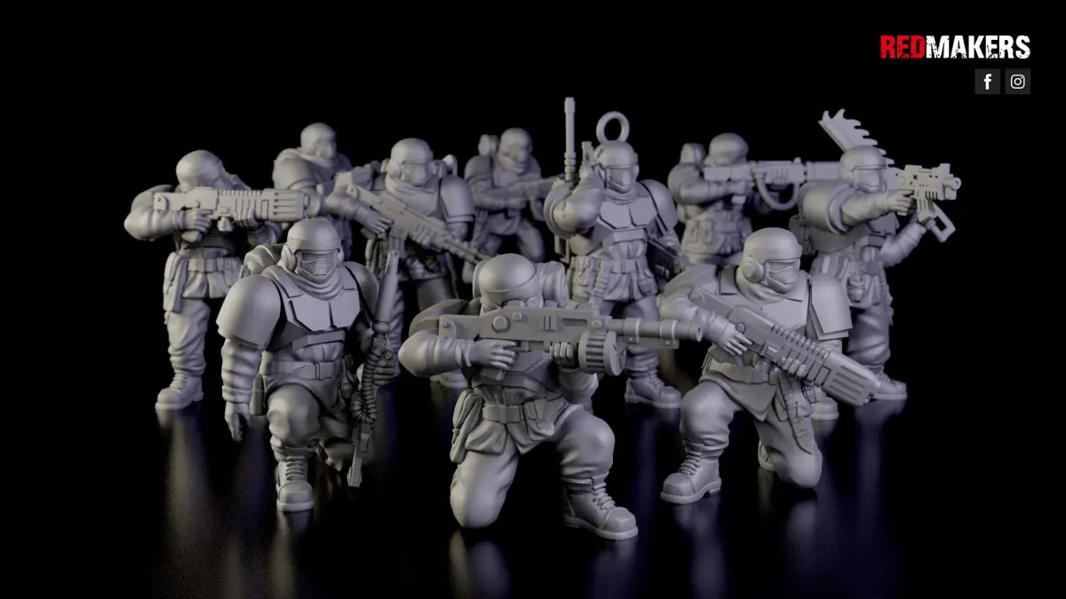 Alpha troop squad consists of 8 soldiers, a radio operator and a sergeant. Each warrior has several weapon options.