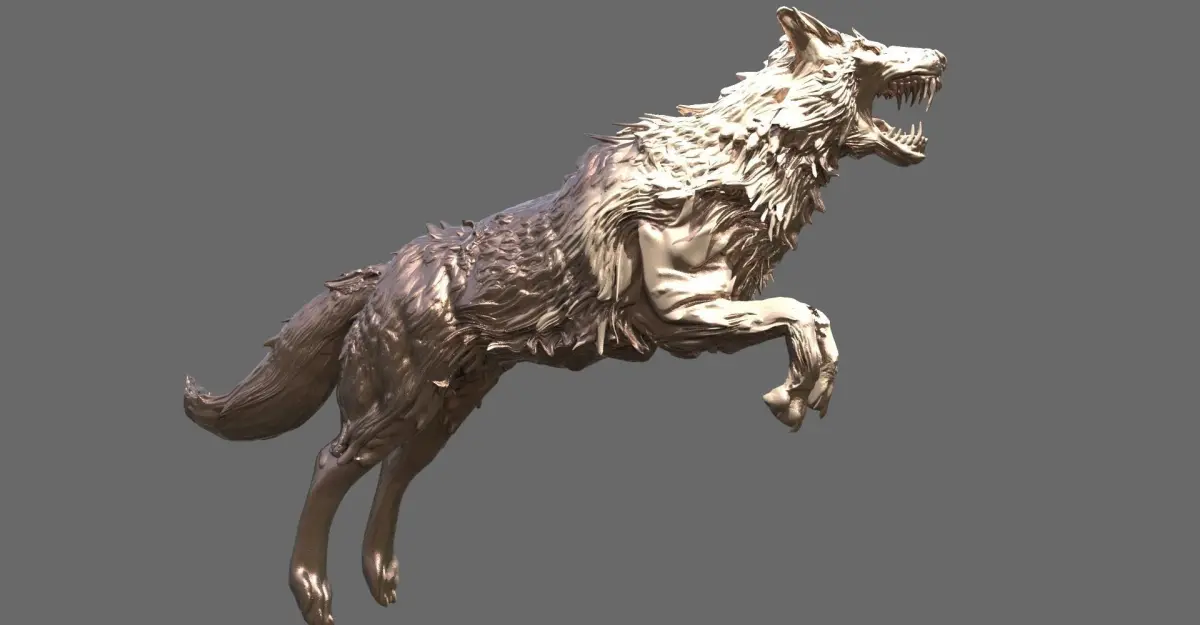 Alpha Wolf Sculpture Giant Jumping 3D model