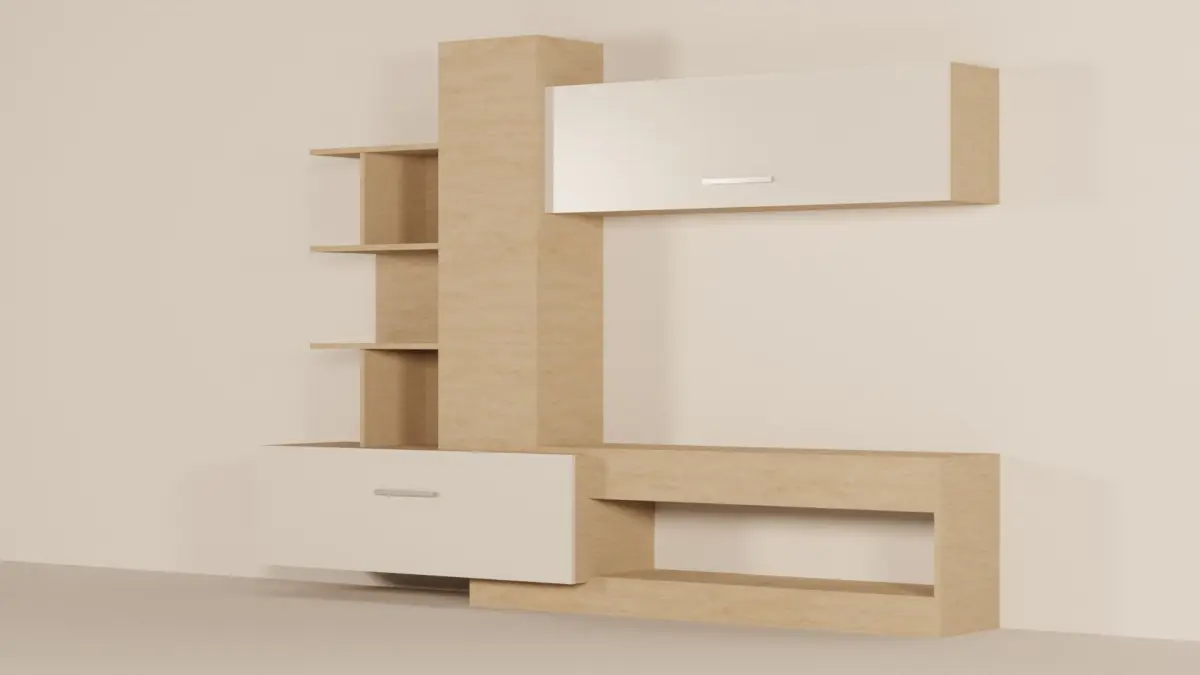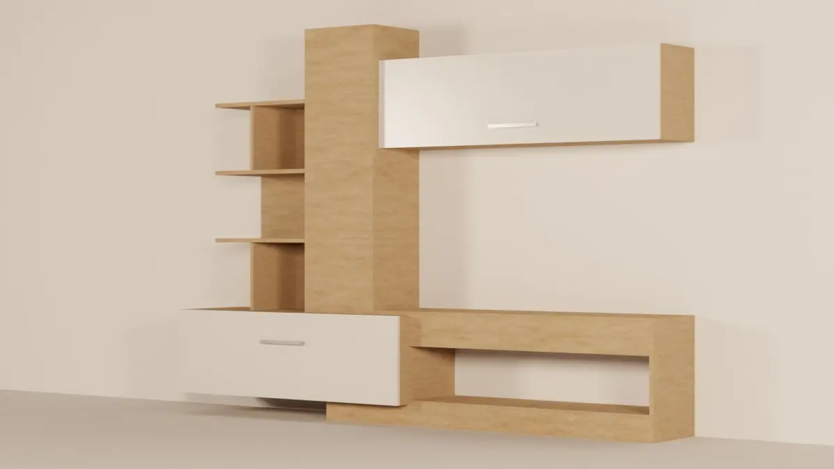 A stylish, minimal Tv unit, perfect for interiors. The original design is by AlphaB2B. The model was created in blender and rendered with cycles (first two renders took 20 min in 4k 100 samples in a mx150 gpu). There is included wood and marble textures (Base Color, Roughness, Normal, Height map included). What's included: