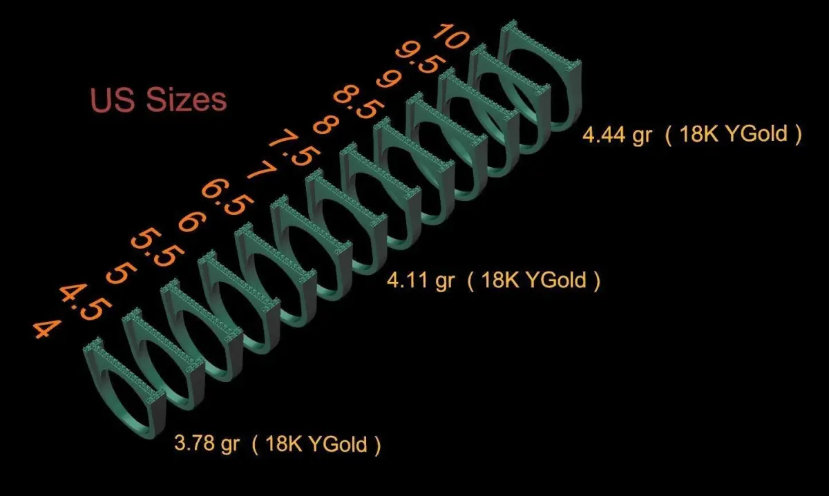 - Ring sizes (US): 4, 4.5, 5, 5.5, 6, 6.5, 7, 7.5, 8, 8.5, 9, 9.5, 10