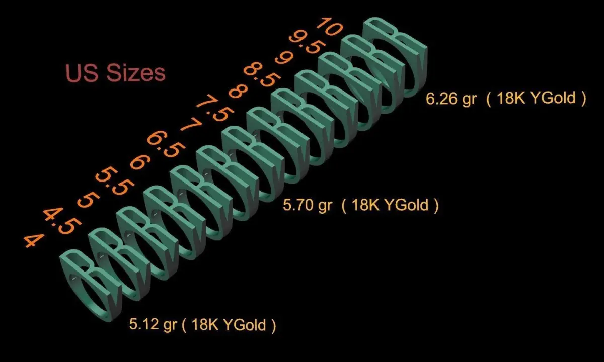- Ring sizes (US): 4, 4.5, 5, 5.5, 6, 6.5, 7, 7.5, 8, 8.5, 9, 9.5, 10