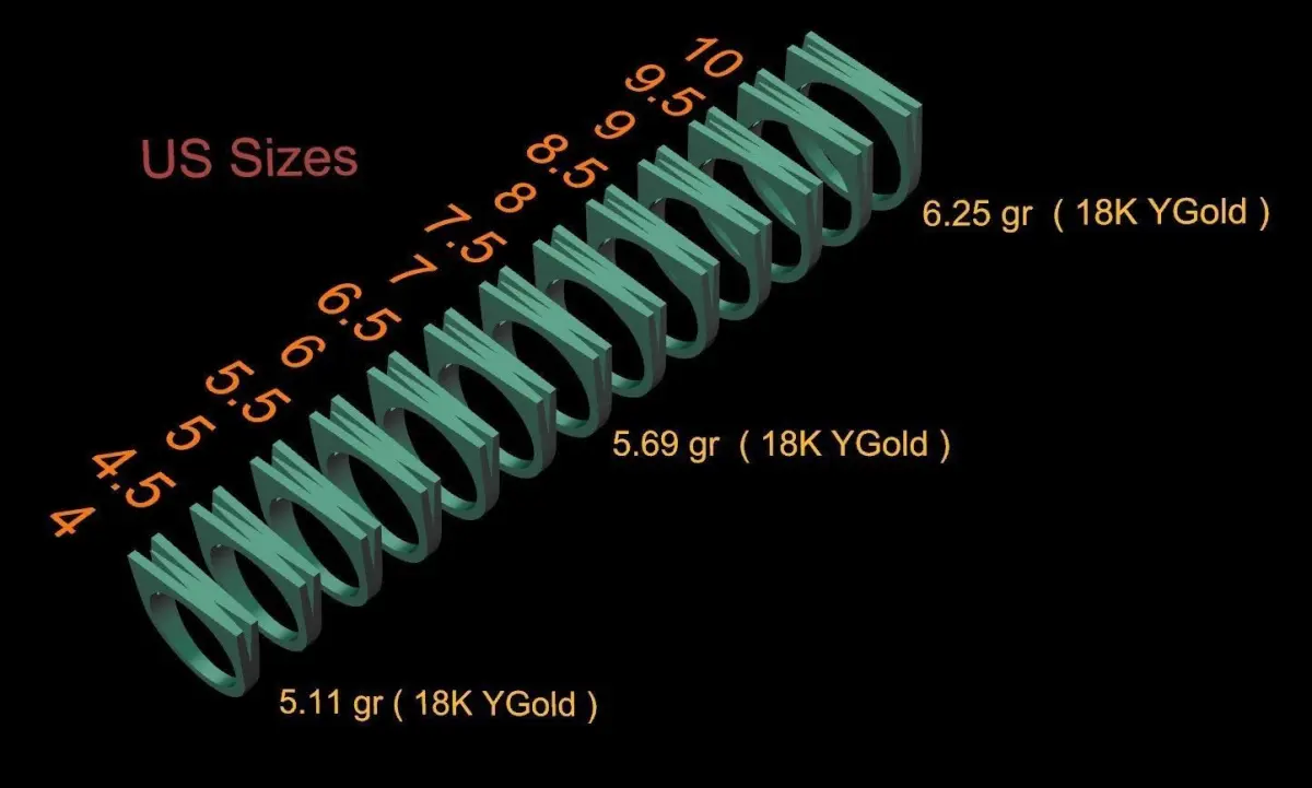 - Ring sizes (US): 4, 4.5, 5, 5.5, 6, 6.5, 7, 7.5, 8, 8.5, 9, 9.5, 10