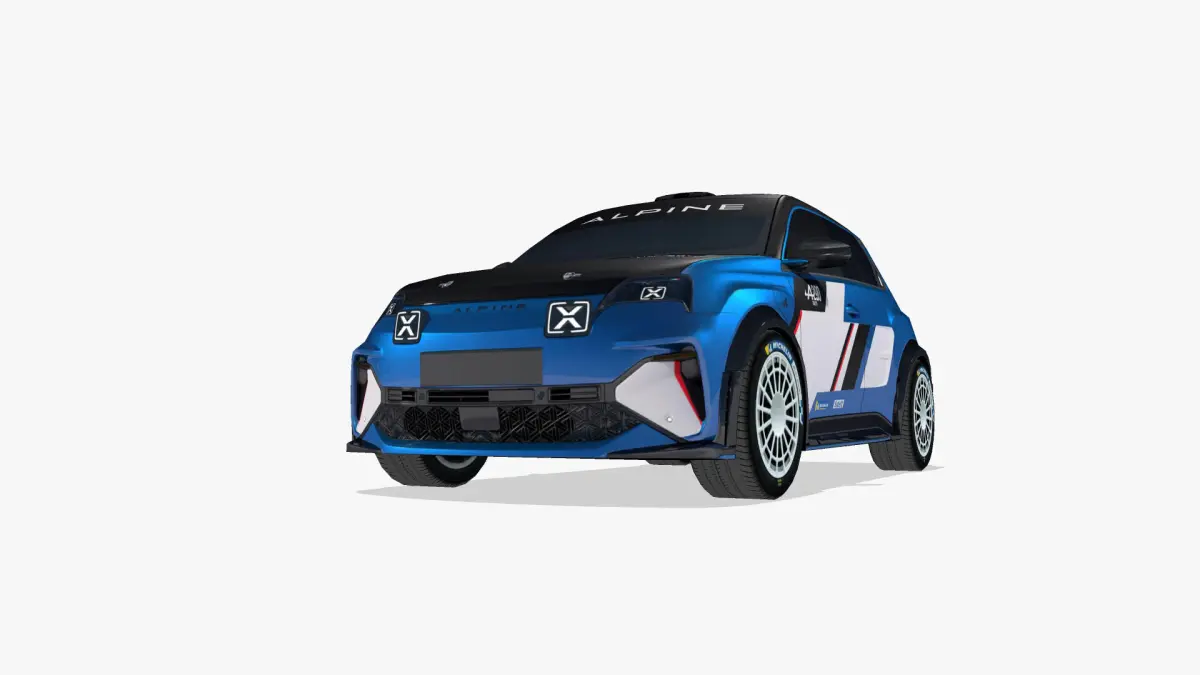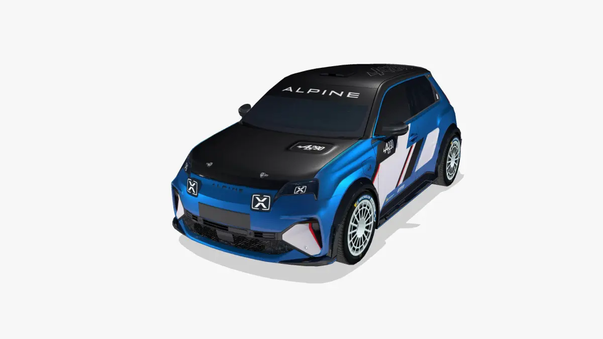3d model of the 2026 Alpine A290 Rallye, a hatchback battery electric race car