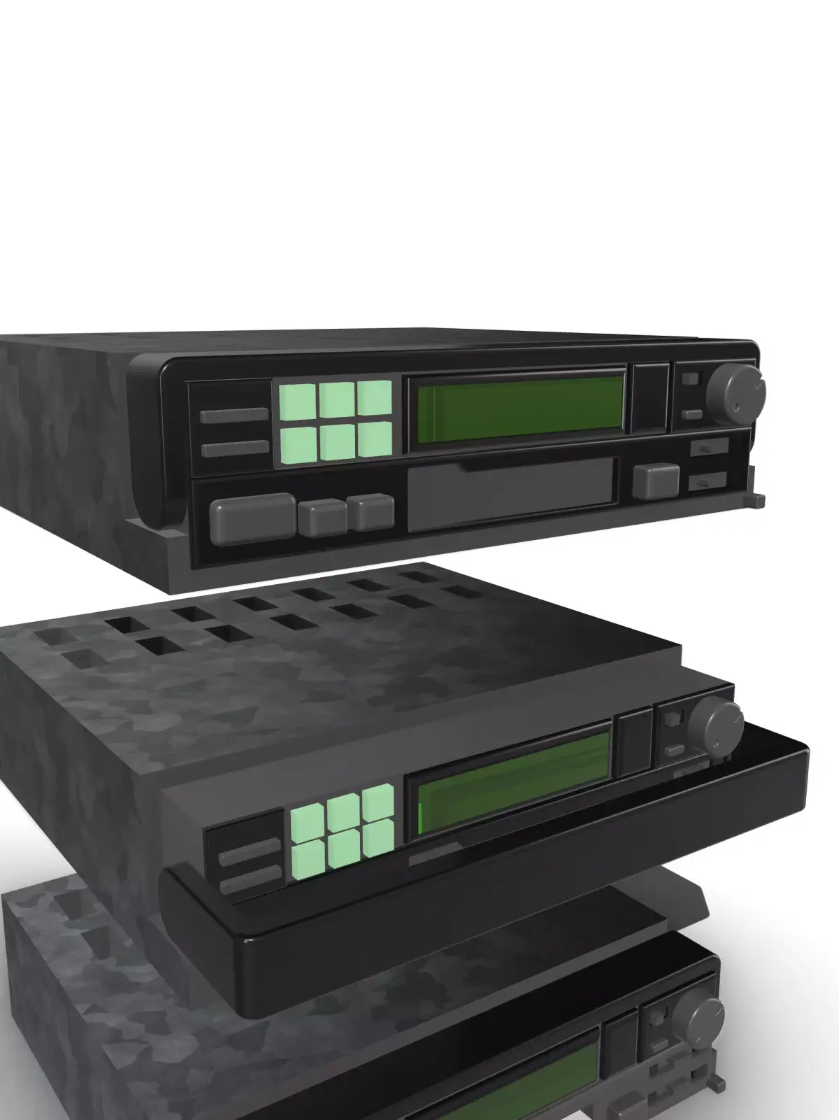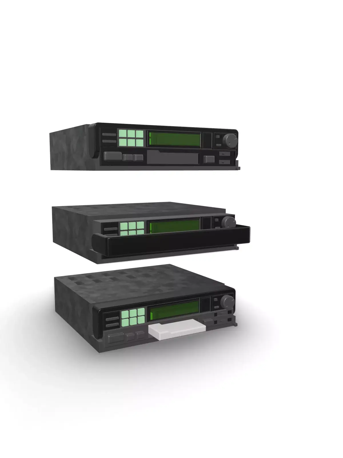 Designed from scratch is an Alpine 90s car audio casette deck with pull-out option, high in detail, ideal for scale modeling (currently in 1/24 and 1/25 scale).
