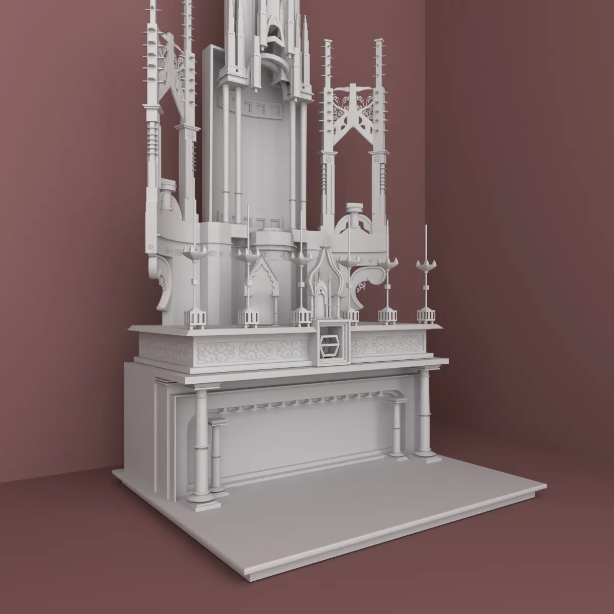Intricately designed 3D altar model, perfect for sacred or spiritual settings. Ideal for use in game environments, architectural visualization, or fantasy scenes, featuring detailed craftsmanship and a mystical aura. You have the flexibility to add any 3D statue of your choice.