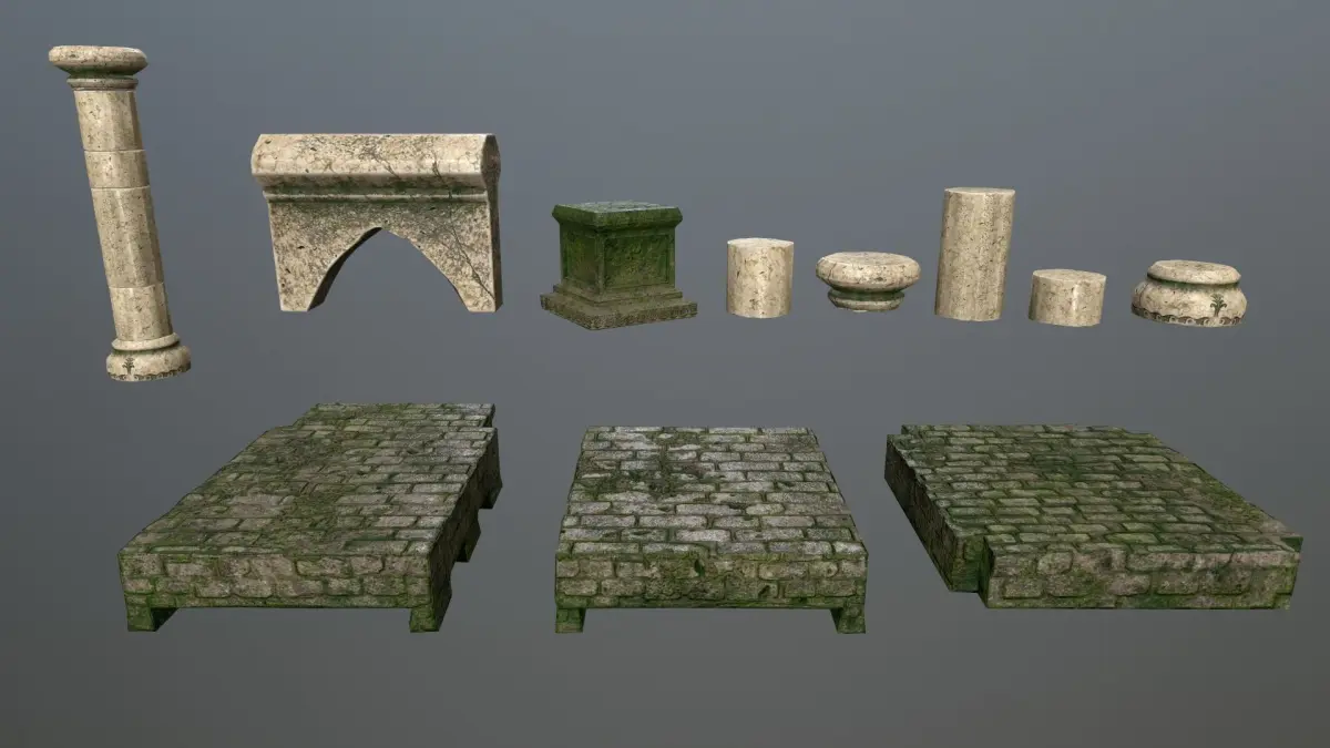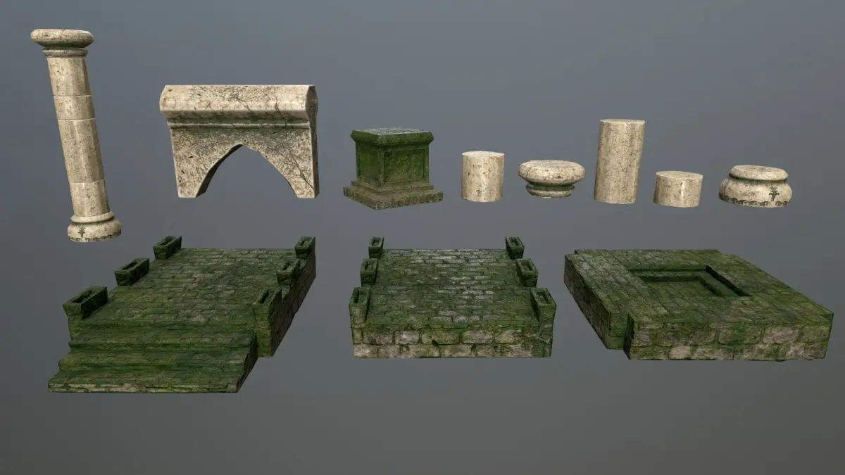Home Catalog Historic aircraft Altar Set stone wall with grass Low-poly 3D model