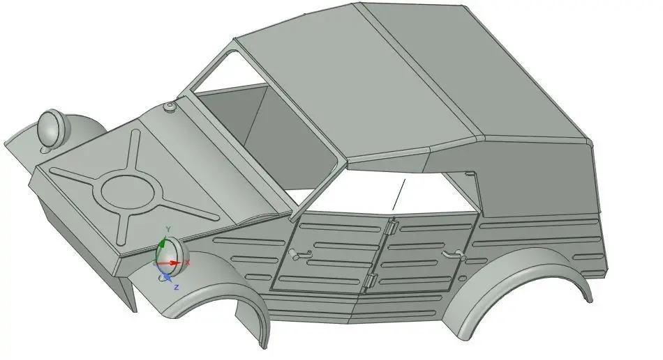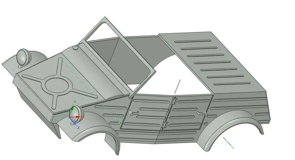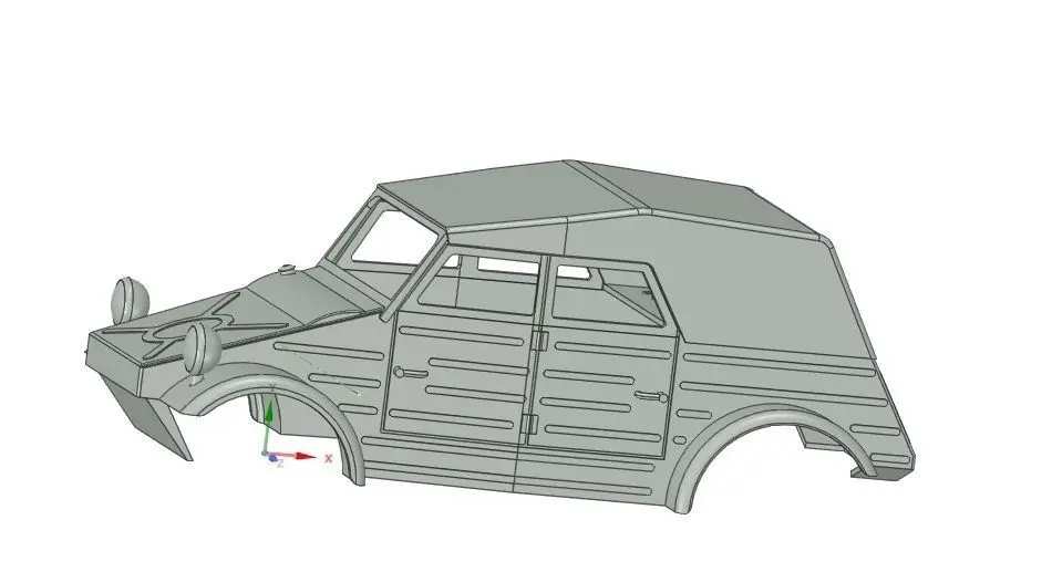 Alternative body for the WPL C14 C24 chassis.It is the body of the German Kübelwagen Type 82 all-terrain vehicle. Used during the Second World War on all frontages. The body is made as several elements for self-printing and gluing. Some parts may require the use of print supports. We recommend printingNozzle: 0.4mmLayer: 0.2 or 0.1mmI recommend using CA glue for gluing. Do you have questions about the project?Write a message.