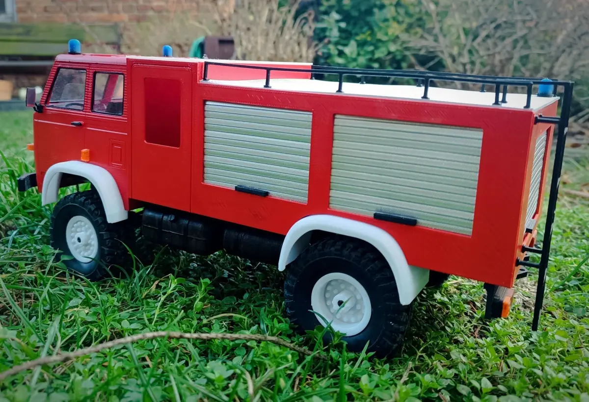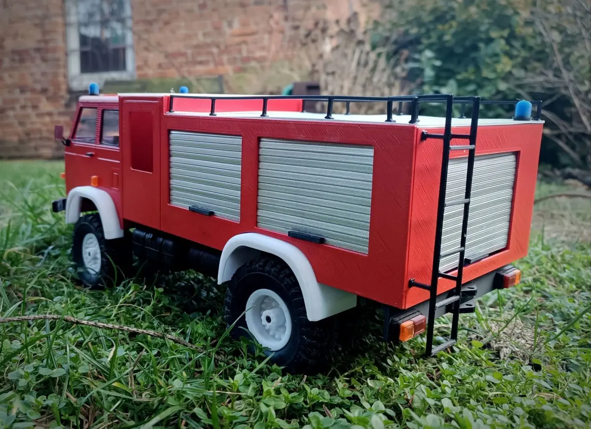 Alternative Star 266 UNISTAR 4x4 Firefighter cabin and structure with accessories for the WPL chassis. The cabin fits the WPL chassis based on the C-frame. The width of the cabin in the wheel arches is 145mm Star 266 is a Polish off-road truck from the communist period. 6 or 4-wheel drive. When you buy these files, you get 55 Stl files of 3D printing elements. The driver's cabin includes an interior and the possibility of installing headlight and turn signal lighting. Some elements require the use of supports. The fire station has 5 movable (opening) blinds giving access to its interior. The interior of the structure will accommodate all electronics, a water tank and a fire extinguishing pump. ;) To build, you need 6 pcs of M3x10 screws and 8 round magnets measuring 5x1mm. We recommend printing with a 0.4mm nozzle on a 0.2 or 0.1 mm layer