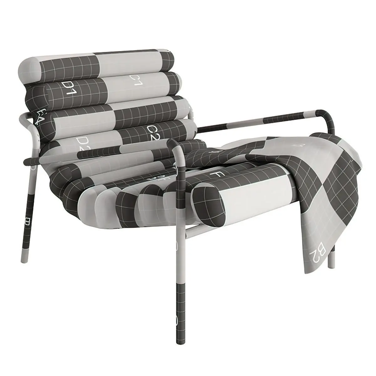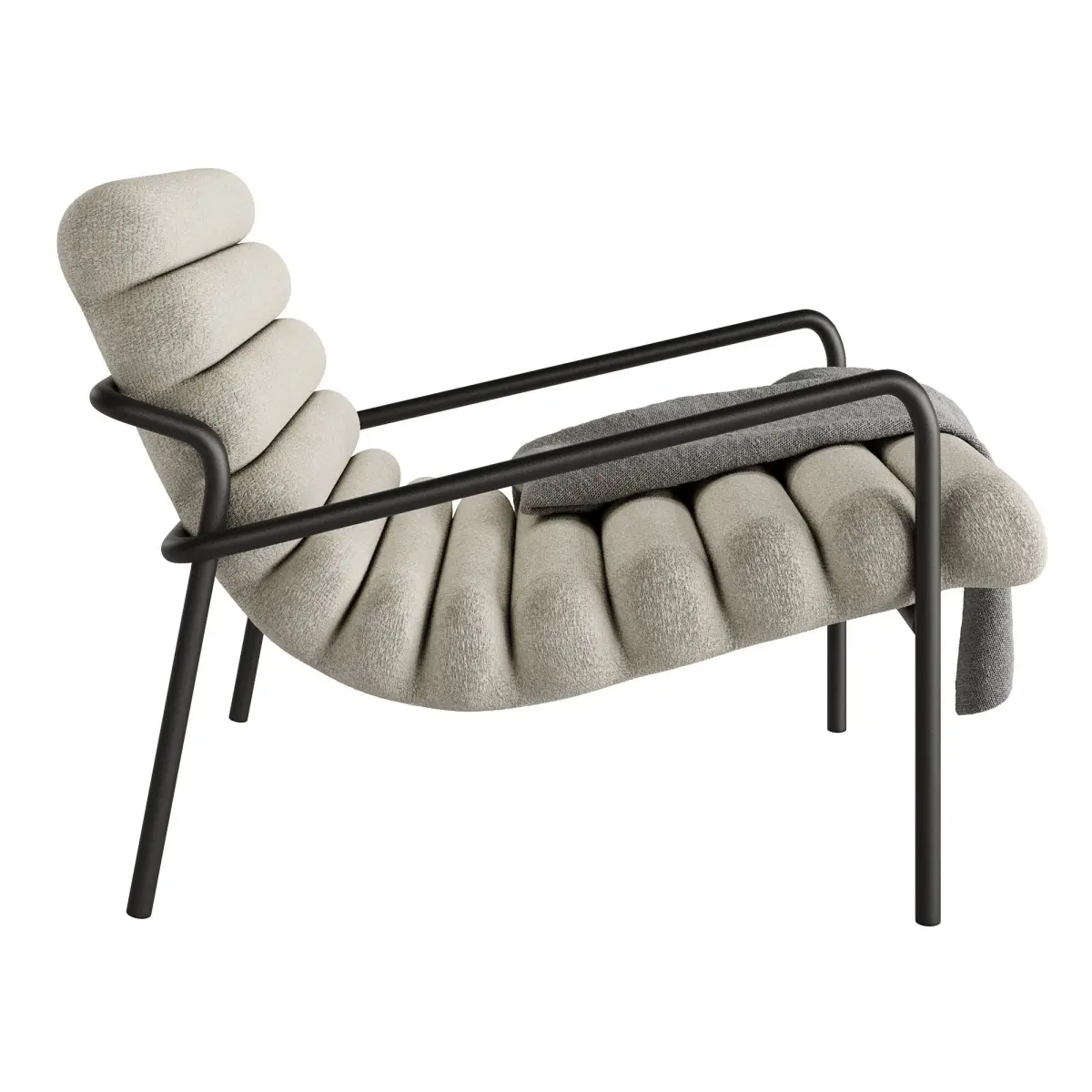 Lounge armchair with design curves, fabric and black metal matte.This designer armchair adapts easily to its environment,dining room,living room,office.This 3D model is a reproduction inspired by a real product.