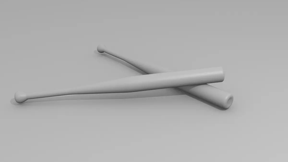 An aluminium baseball bat scene with floor texture included.