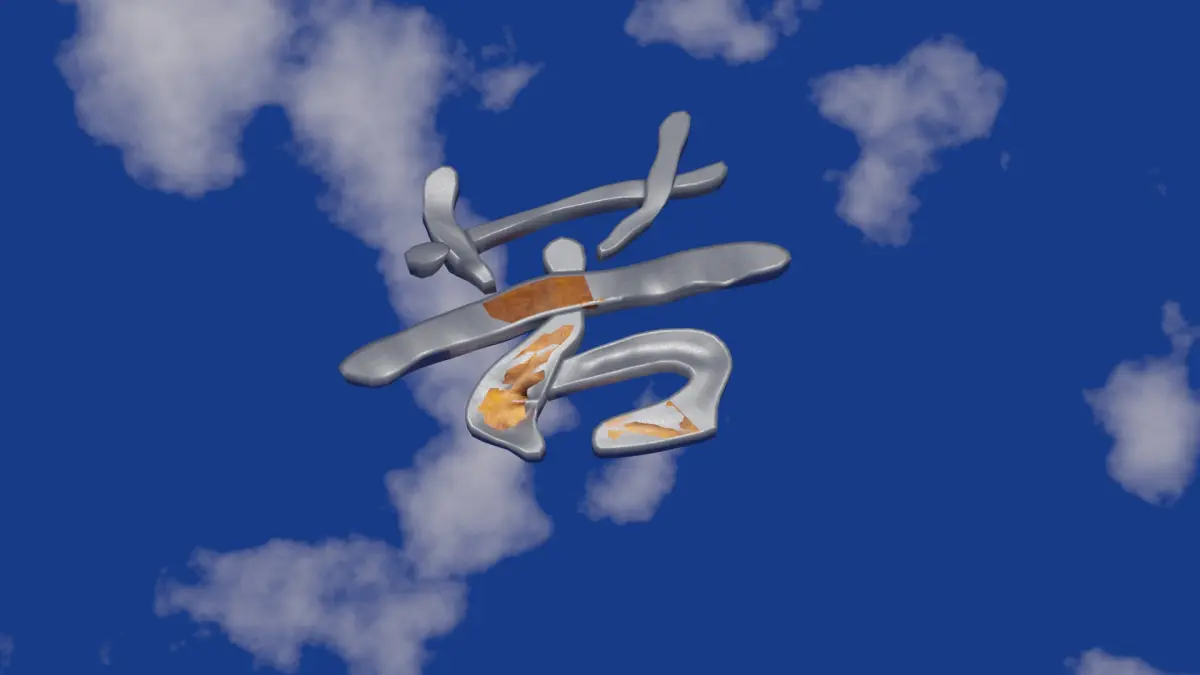 Chinese text in model: 苦 = hard, bitter. I made in a shape close to caligraphy form, so it looks a bit different with print form.