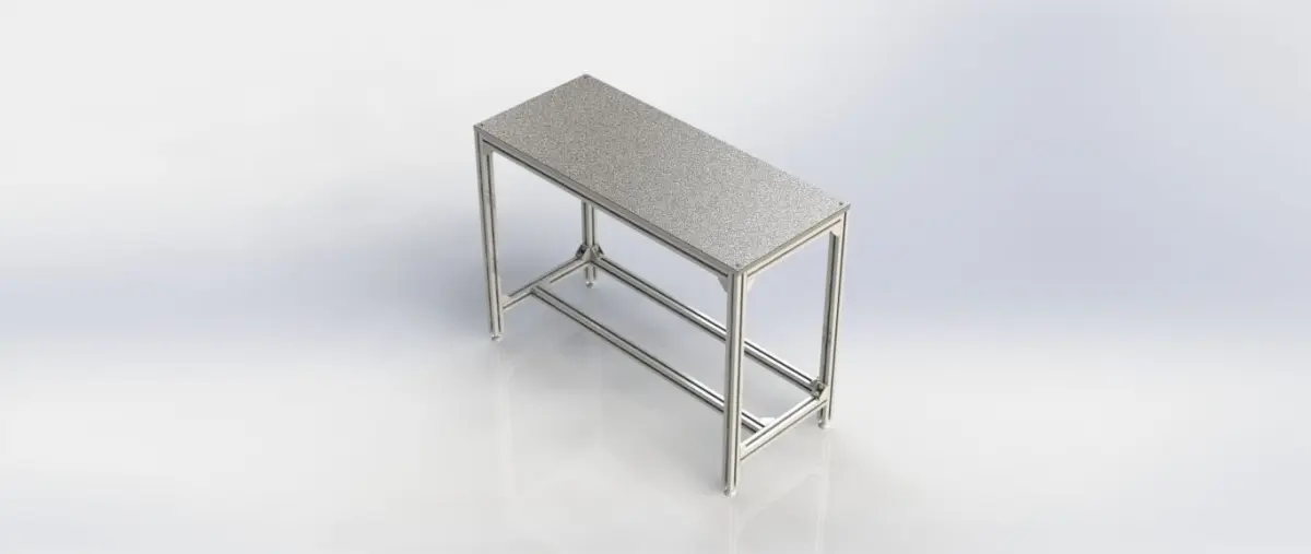 Aluminum Bench to work, place tools or small machines, you can use anywhere to anything.At the tests in Ansys Software (attached) two metters of steel tube is OK.Model made in one piece, smal size to store in computer memory, whitout pieces and assembly data.Made in SolidWorks, extensions to use in any 3D softwares (.IGES, x_t, .STEP and .STL) you can print your 3D model too (.STL), and has the 3D PDF to presentation.