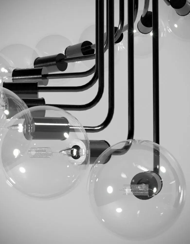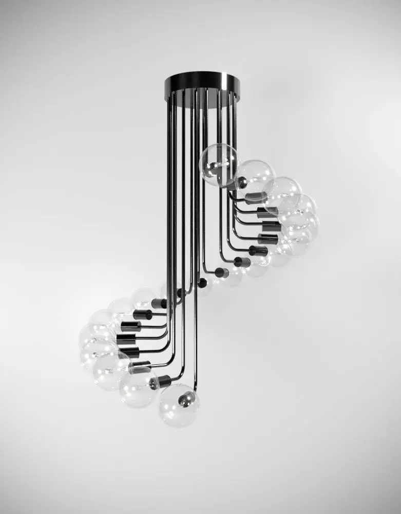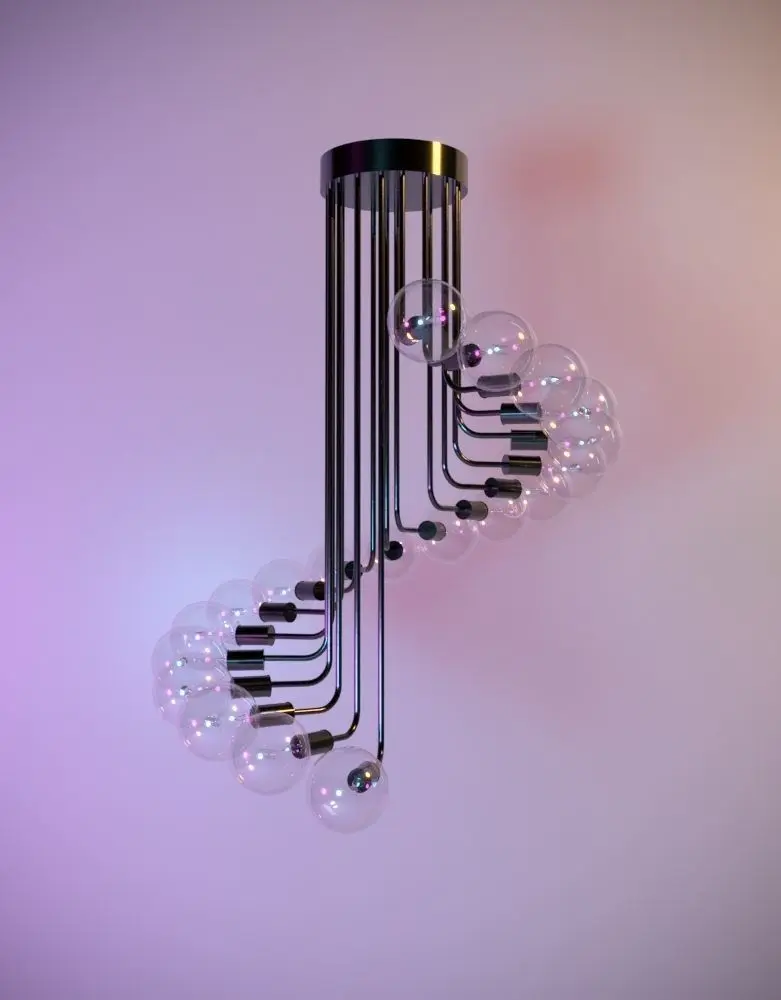 Chandeliers with ceiling lamps with very high detail and have a stylish and modern look.The lamps include subtle internal details like the glowing wire. All materials are Supported on Corona renderer engine.