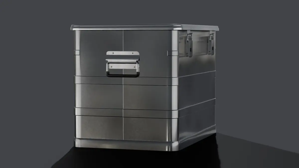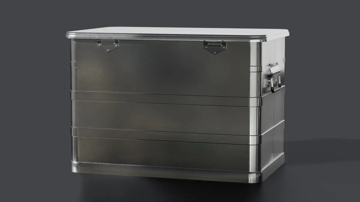 This model is a sturdy industrial aluminum container used for cargo transport. It is stackable with the following products I have created.