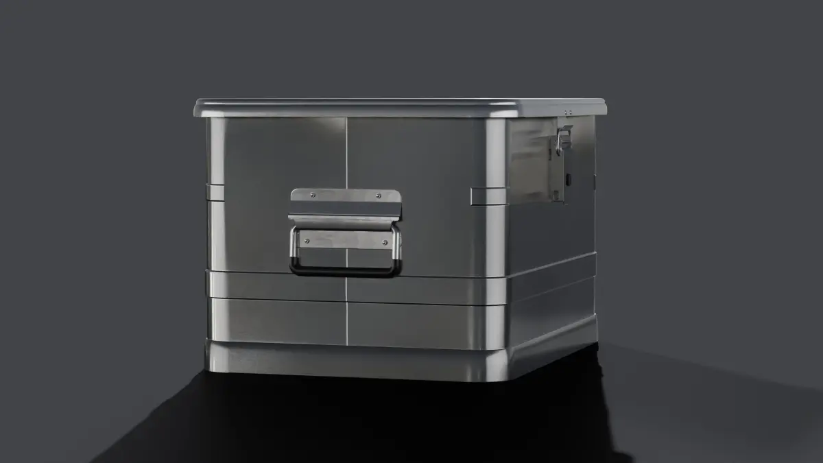 This model is a sturdy industrial aluminum container used for cargo transport. It is stackable with the following products I have created.
