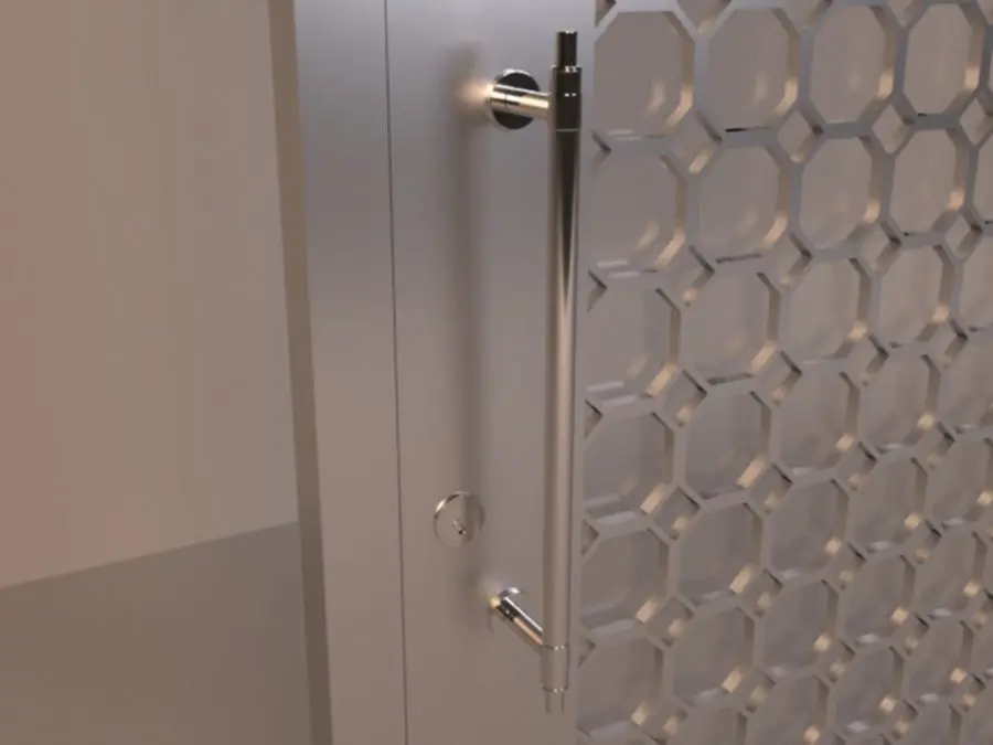 simply designed safty double door made from brushed aluminum and double glass (frosted glass) and steel handles great for main entrances for apartment buildings or you could remove the glass and use it infront of another door just for safety and style