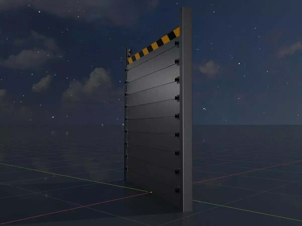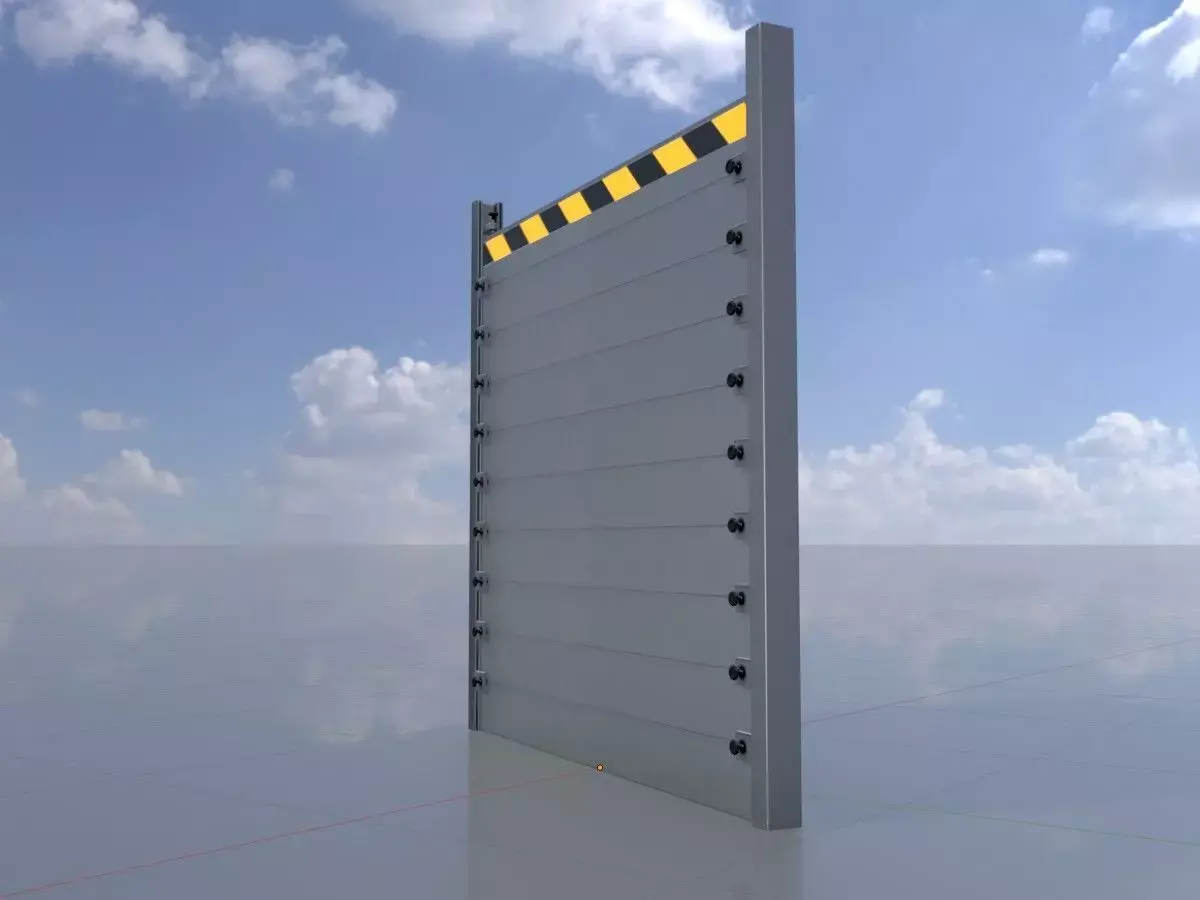 - This model of a flood barrier has been realistically modeled and textured.