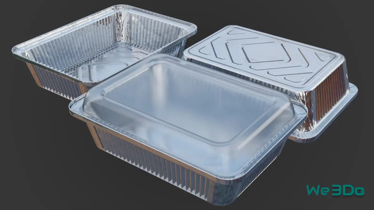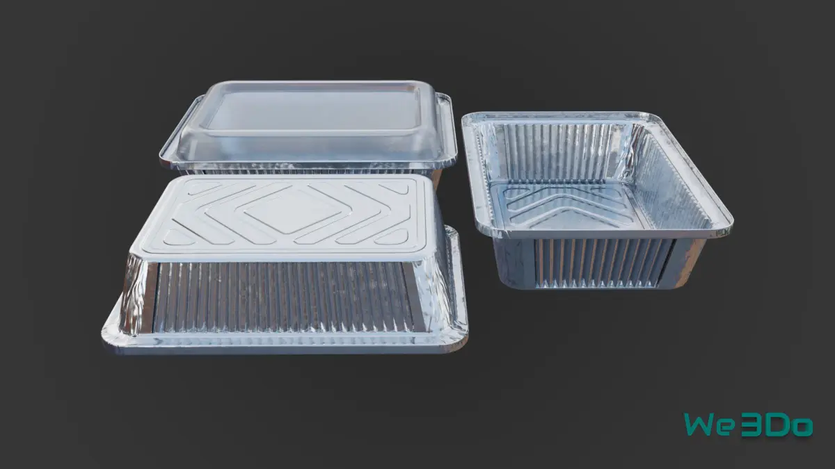 3D Modeling of Aluminum Food Containers with Lids in textures 4k and 2K.