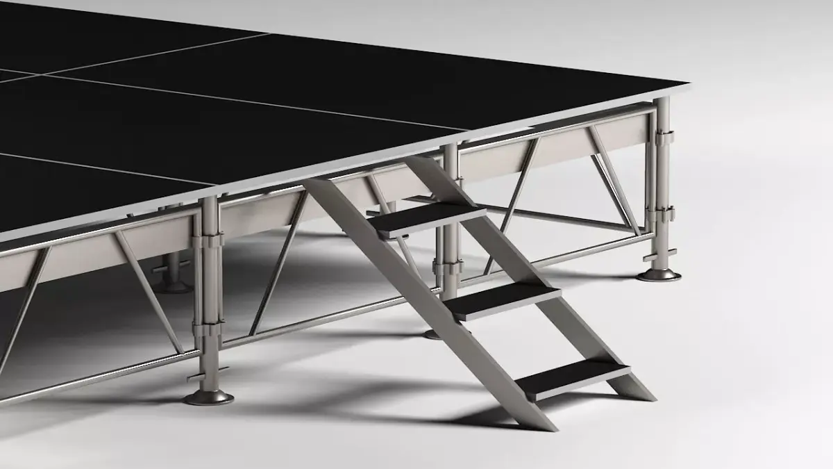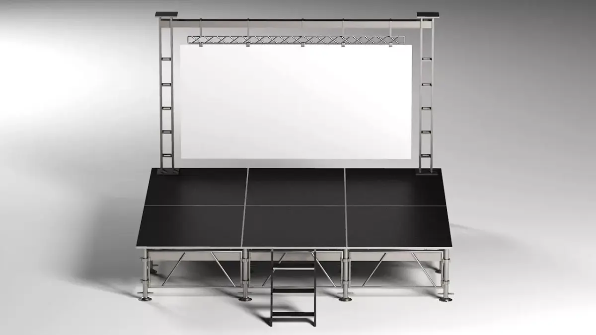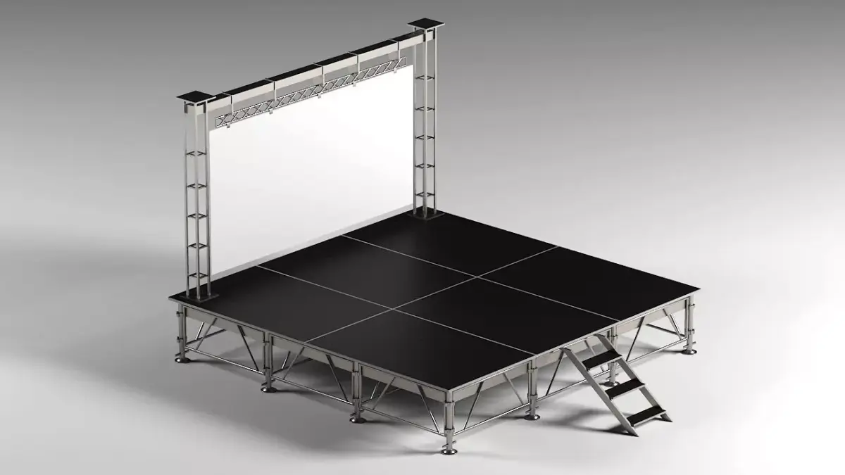 This professional-grade stage system is designed with realism and flexibility in mind, making it perfect for concerts, exhibitions, conferences, and virtual productions. The modular structure allows easy adaptation to different layouts, while the aluminum frame and plywood surface deliver a clean, industrial, and modern look.