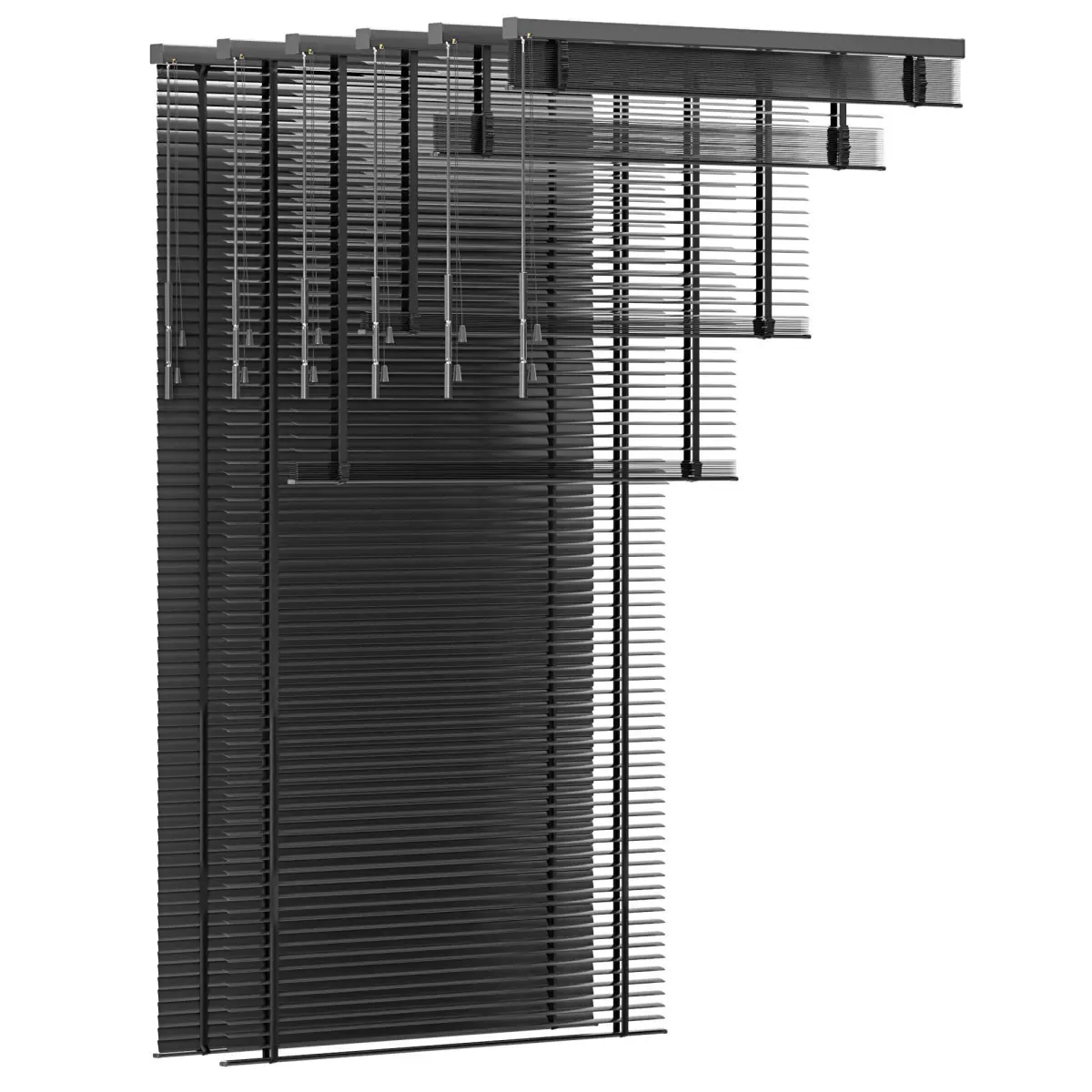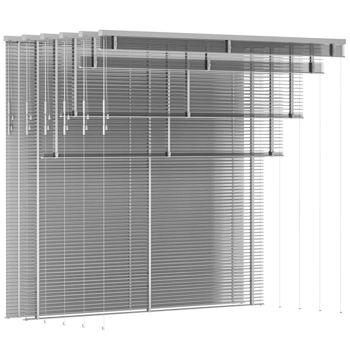 There are 18 objects of Venetian blinds in the archive. 3 types of width. And 6 opening positions. 6 materials with different colors.