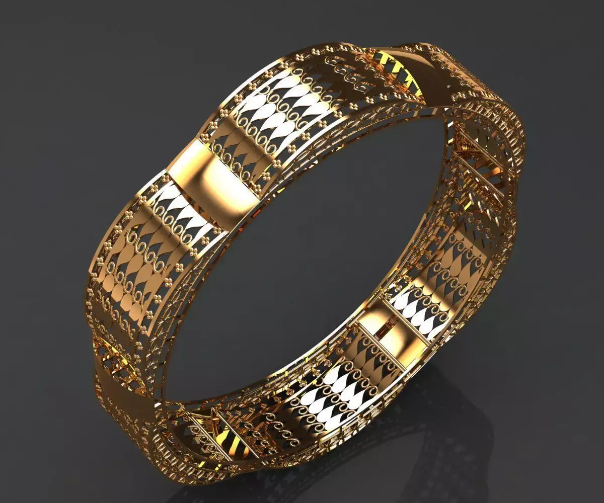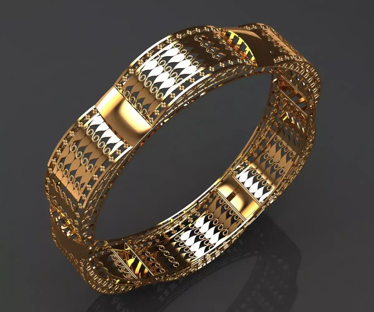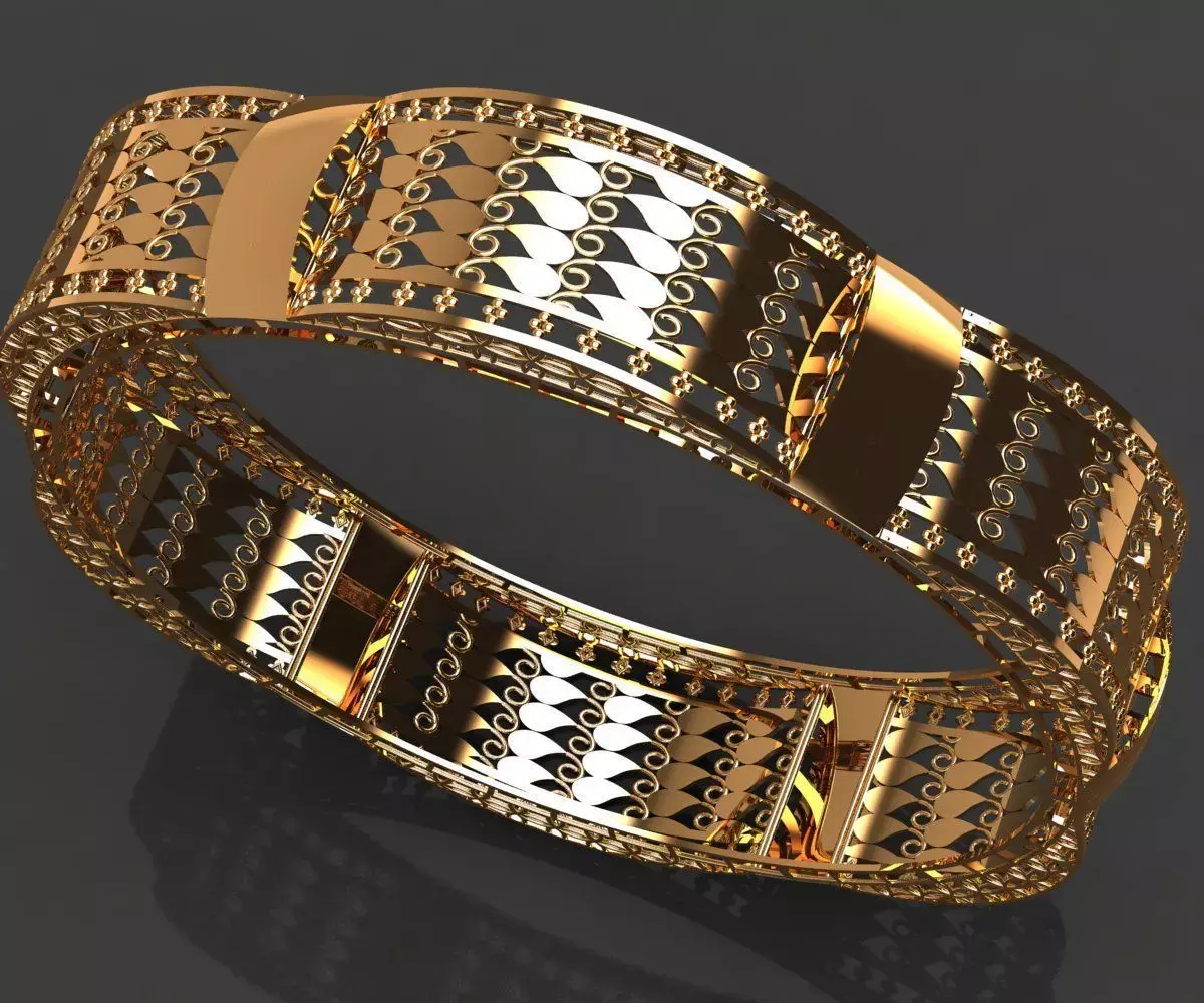 Segmented Architecture: The bangle is divided into arched galleries separated by polished solid gold vertical bands, providing both structural integrity and visual rhythm.Intricate Latticework: Each vaulted section features a precision-cut teardrop/paisley pattern, allowing for a play of light and shadow while reducing the overall metal weight without compromising strength.