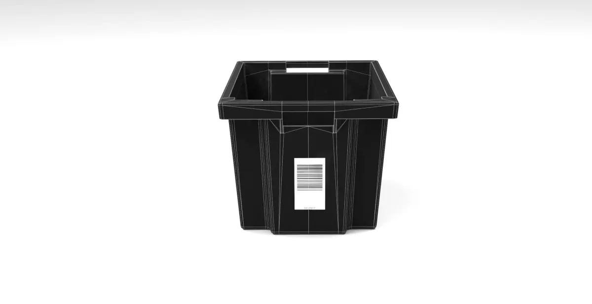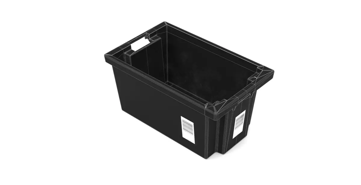 This high-quality 3D model represents an industrial plastic crate inspired by the storage totes used in large-scale logistics centers, such as Amazon warehouses. These crates are widely used for internal transportation, item sorting, and inter-facility transfers.