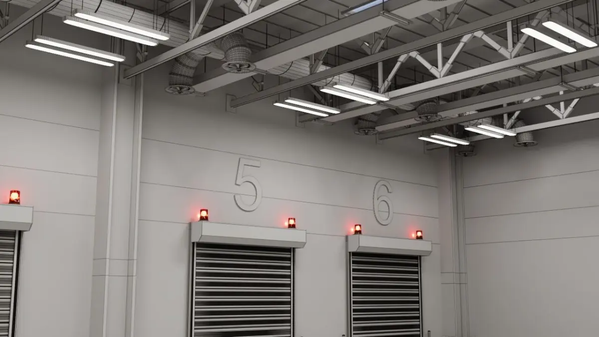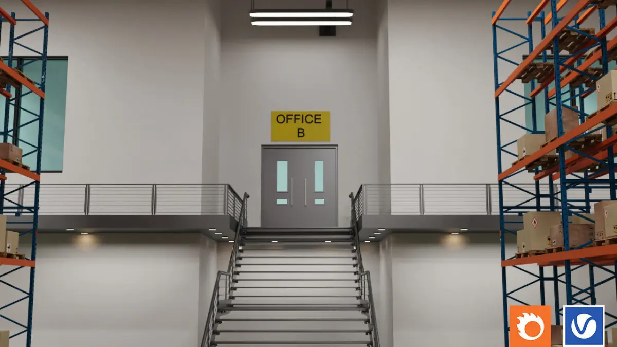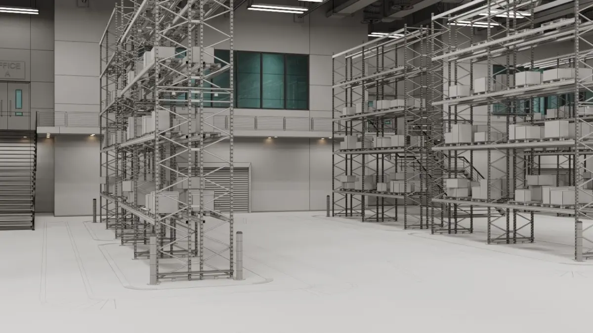 This is a compact 3D warehouse model featuring organized shelving units, stacked parcel boxes, road markings for traffic flow, and fully animated signal lights.It’s ideal for visualizations, logistics training, simulations, or virtual tours in warehouse or industrial environments.