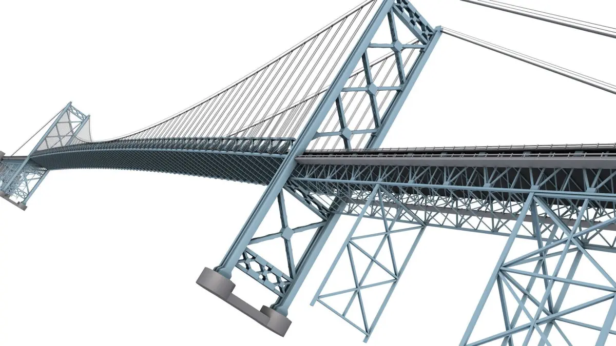 Detailed arches, piers, structural beams, and support elements